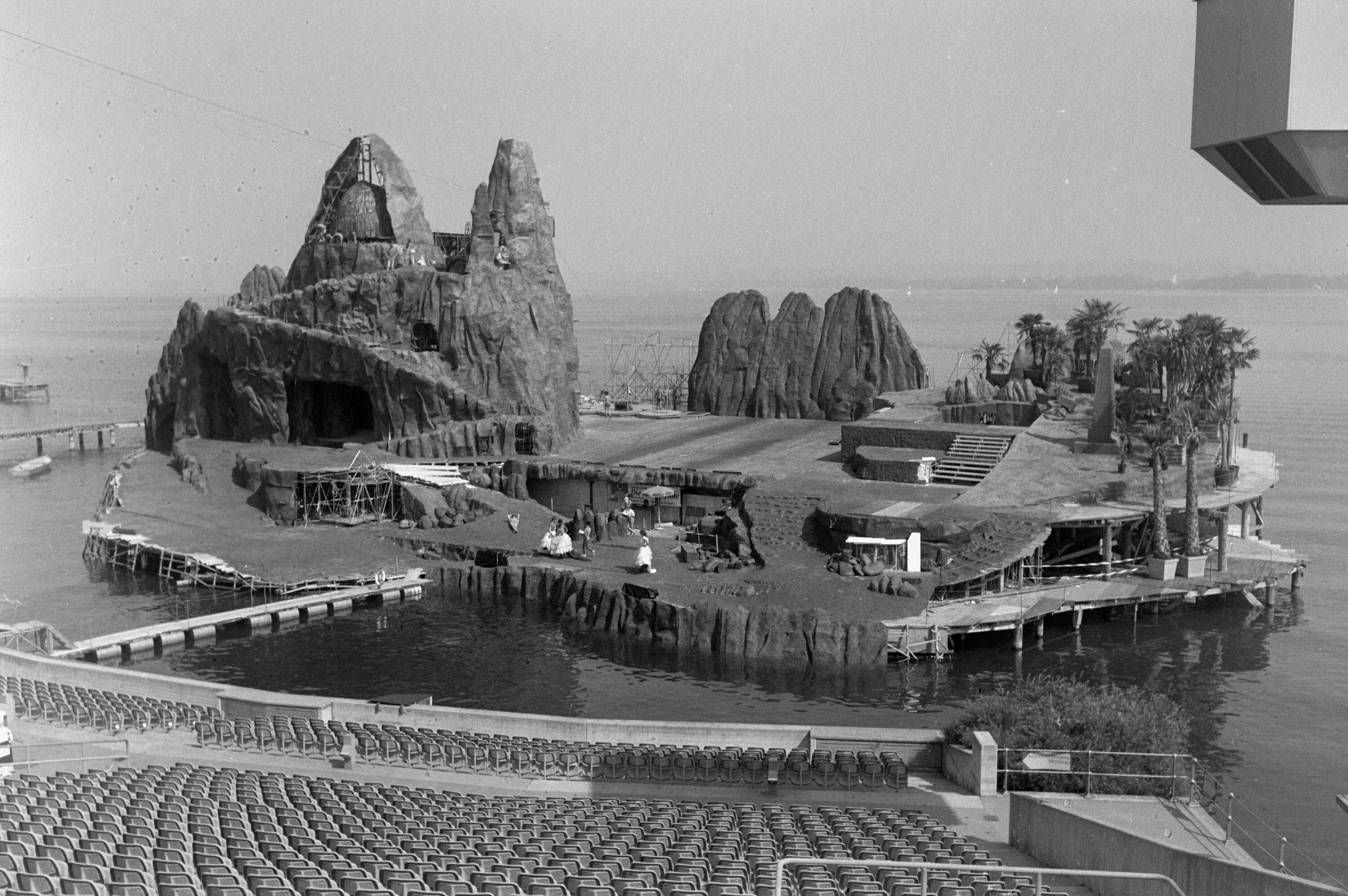 Modell des Bühnenbilds der Festspiele 1982 und die im Umbau befindliche Seebühne