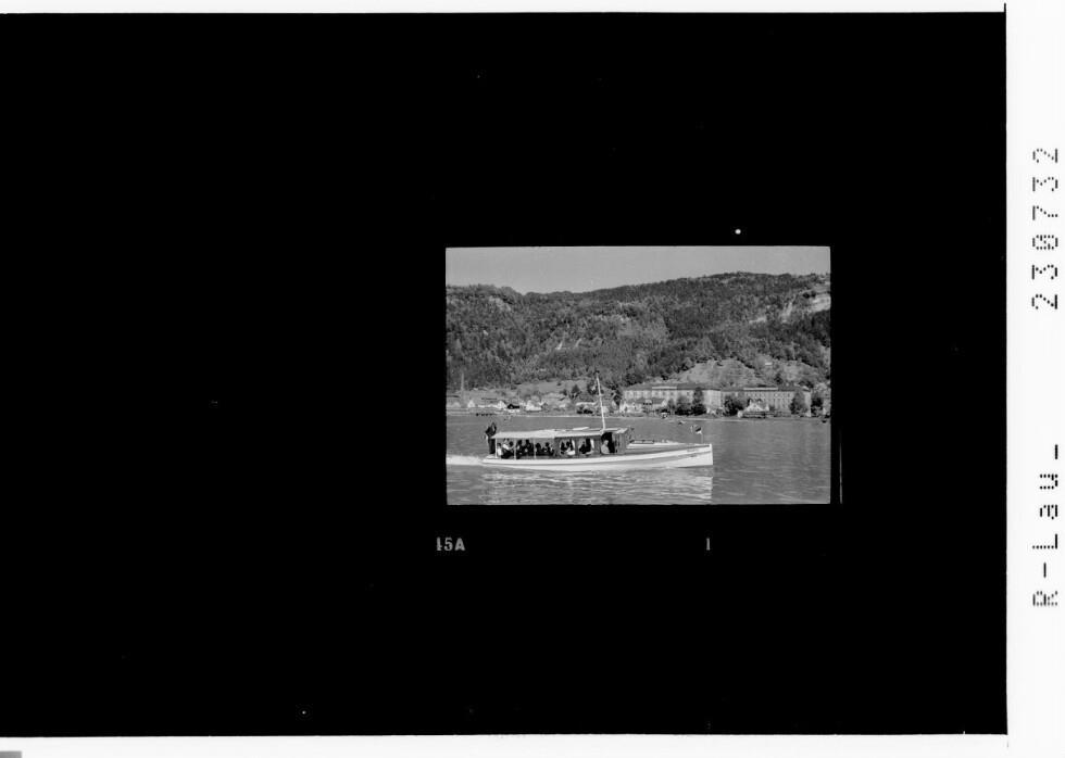 [Motorboot Brigantia auf dem Bodensee bei Bregenz mit Blick zum Pfänder]