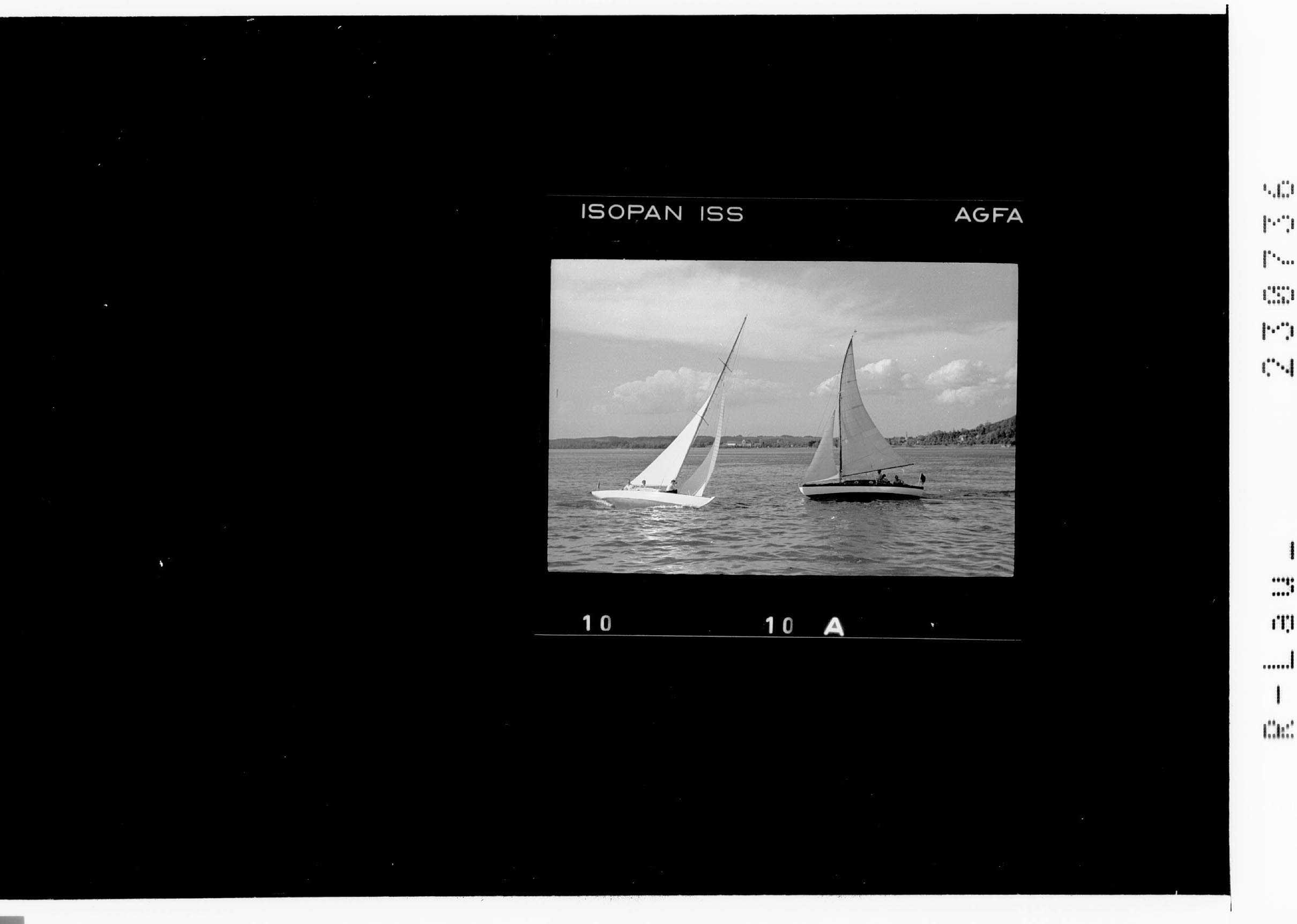 [Segelboot auf dem Bodensee bei Bregenz mit Blick gegen Lochau]