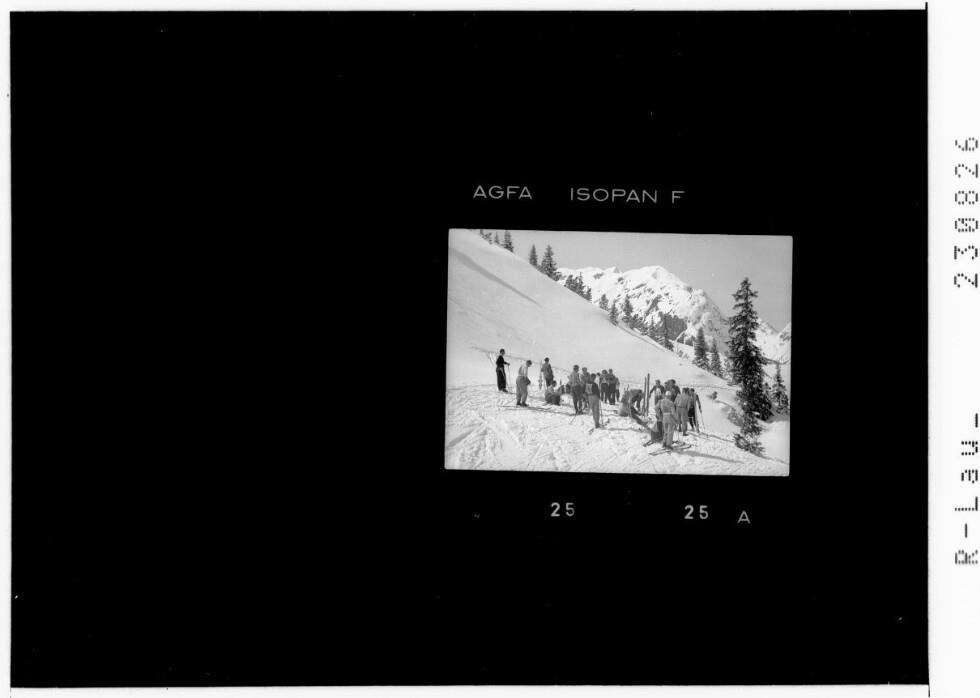 [Skirennläufer bei den Landesmeisterschaften 1948 in Lech am Arlberg vor dem Start zum Slalom]