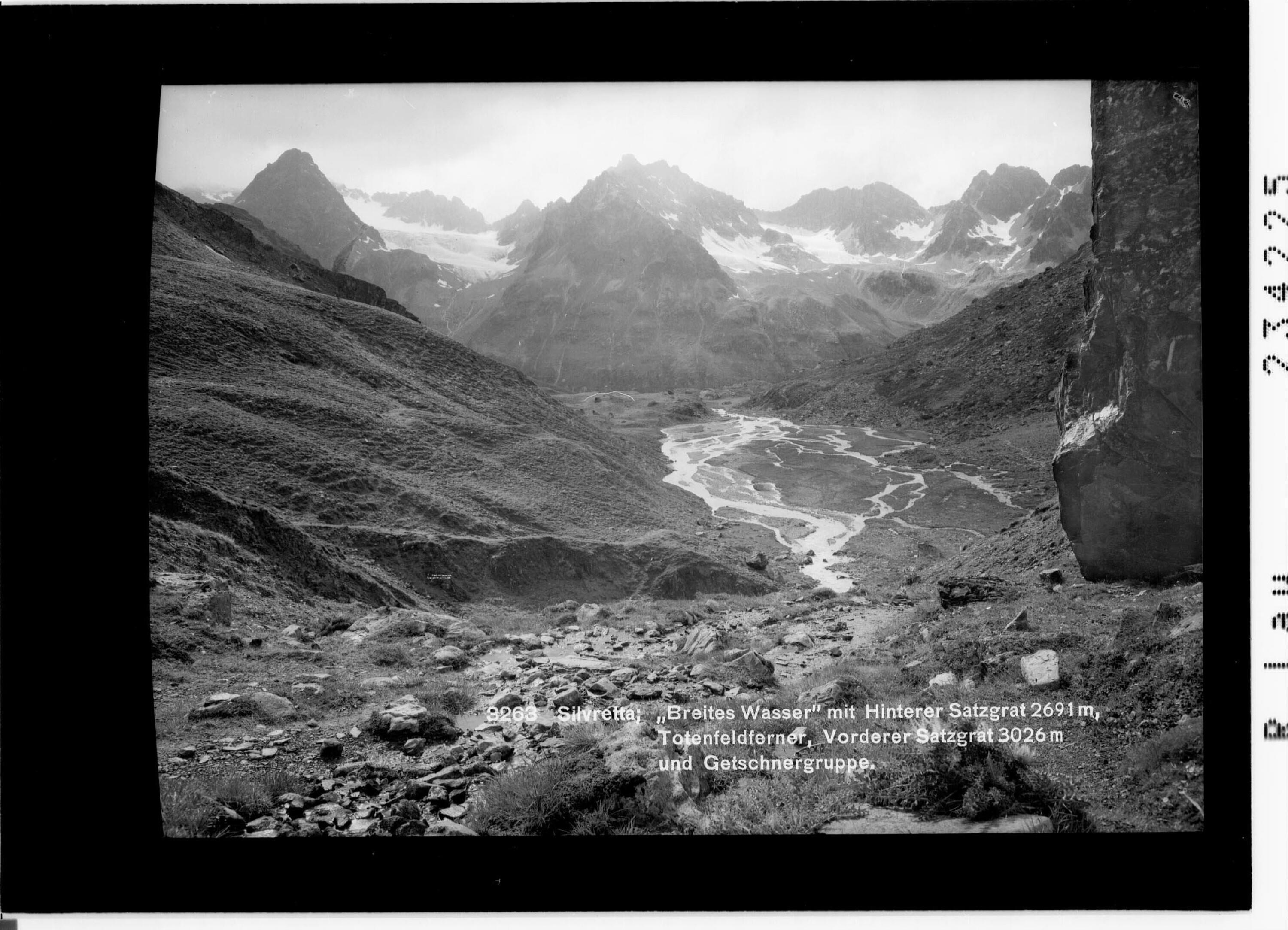 Silvretta / Breites Wasser mit Hinterem Satzgrat 2691 m, Totenfeldferner, Vorderem Satzgrat 3026 m und Getschnergruppe