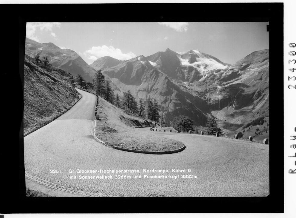 Gr.Glockner-Hochalpenstrasse, Nordrampe, Kehre 6 mit Sonnenwelleck 3266 m und Fuscherkarkopf 3332 m