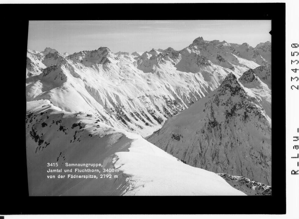 Samnaungruppe, Jamtal und Fluchthorn 3408 m von der Fädnerspitze 2792 m