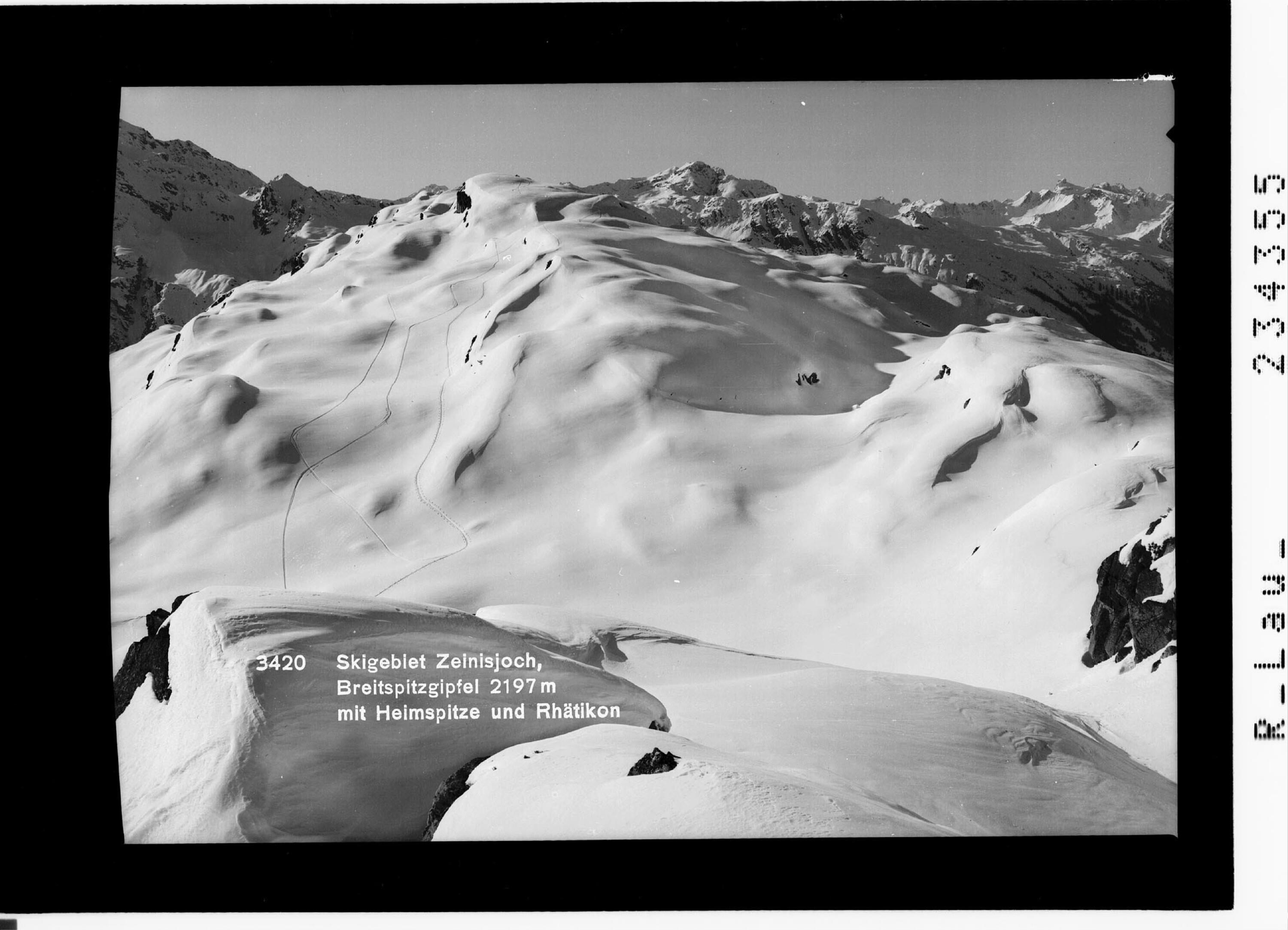 Skigebiet Zeinisjoch, Breitspitzgipfel 2197 m mit Heimspitze und Rhätikon