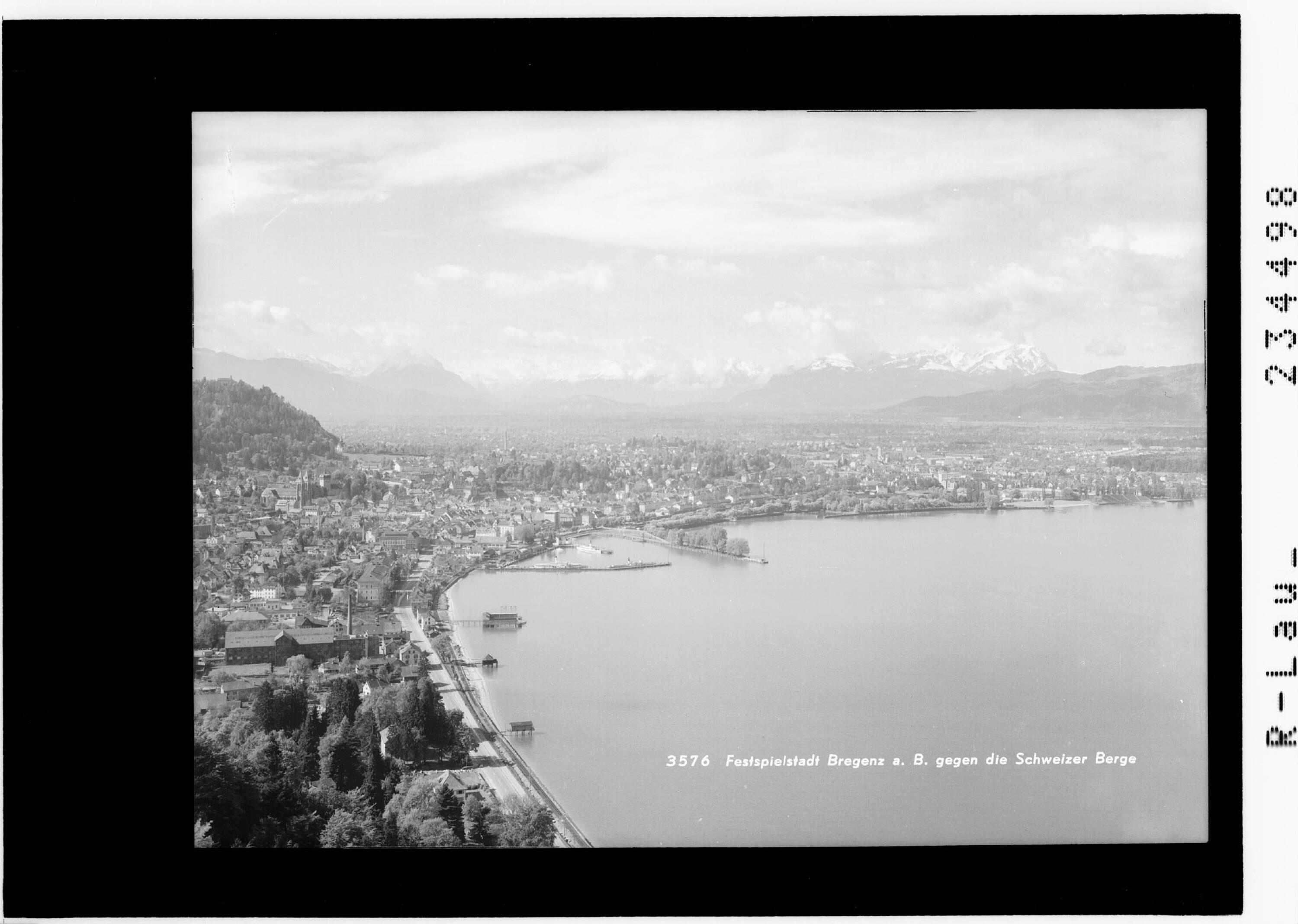 Festspielstadt Bregenz am Bodensee gegen die Schweizer Berge