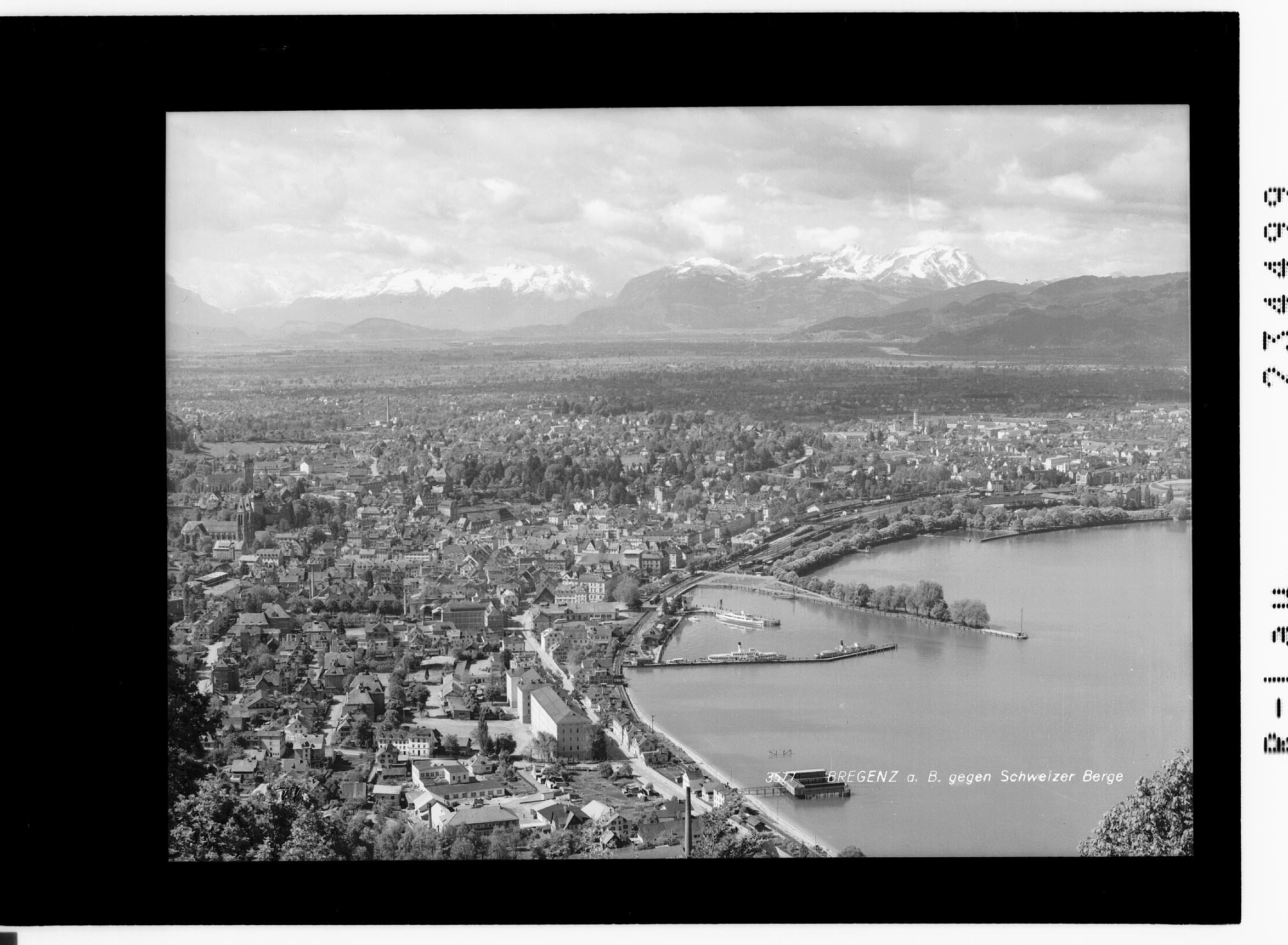 Bregenz am Bodensee gegen Schweizer Berge