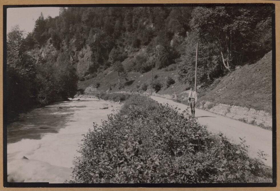 Trassenaufnahme der Transportbahn Tschagguns- Partenen, hm 175 im Zerras, Strassenverlegung