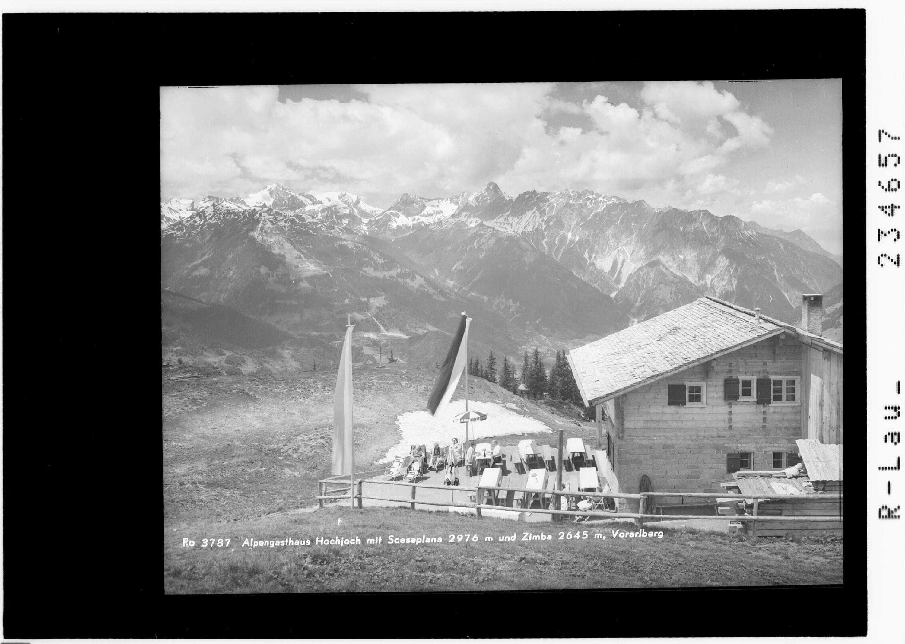 Alpengasthaus Hochjoch mit Scesaplana 2976 und Zimba 2645 m / Vorarlberg