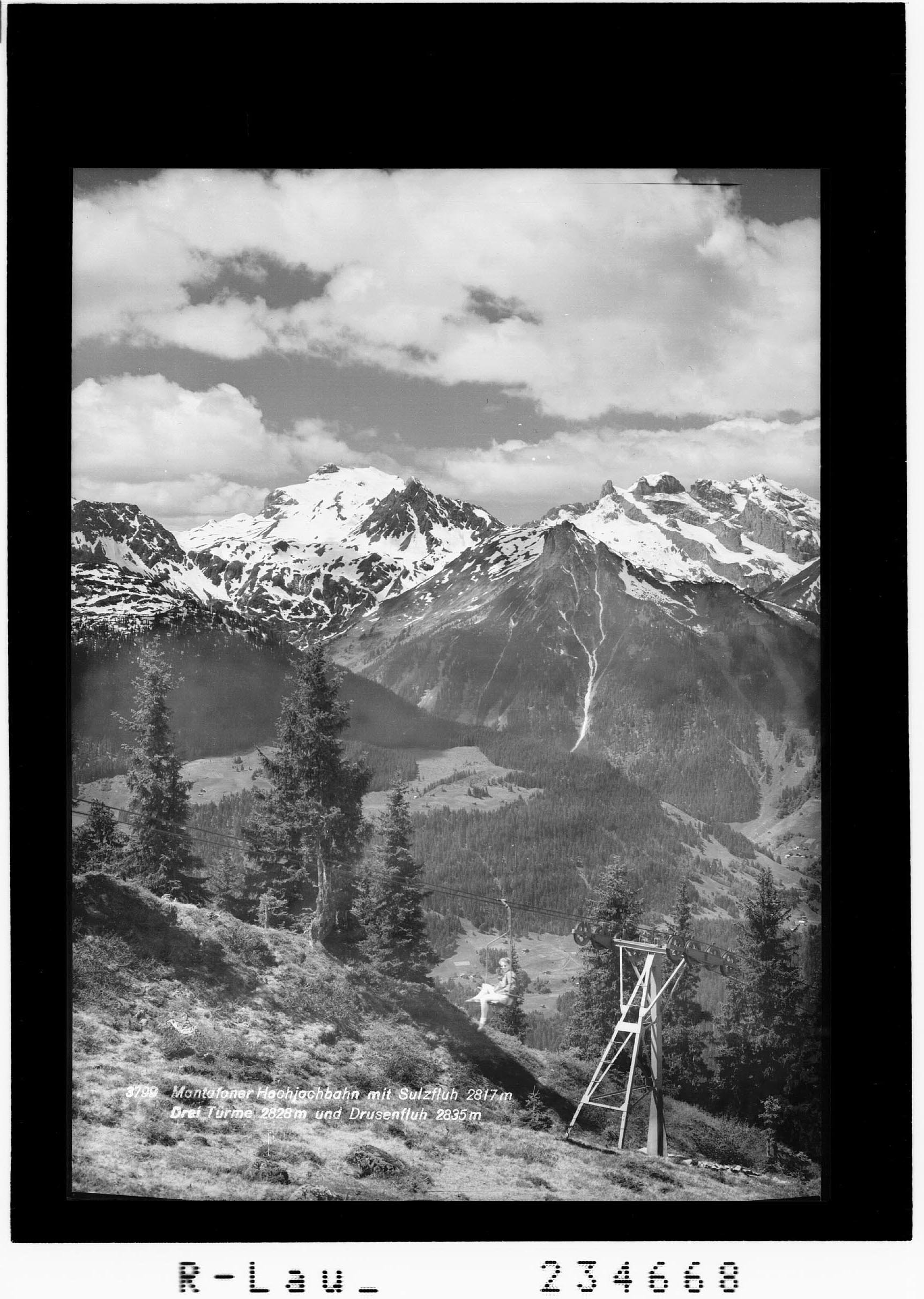 Montafoner Hochjochbahn mit Sulzfluh 2817 m, Drei Türme 2828 m und Drusenfluh 2835 m