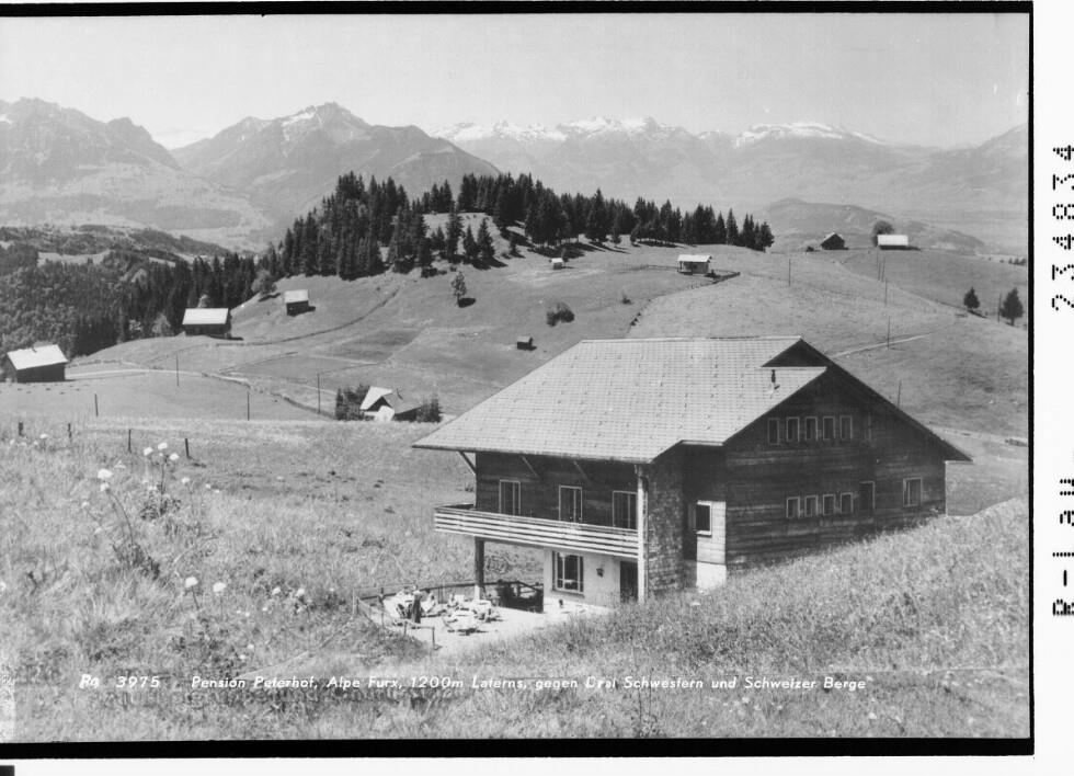 Pension Peterhof, Alpe Furx 1200 m, Laterns, gegen Drei Schwestern und Schweizer Berge