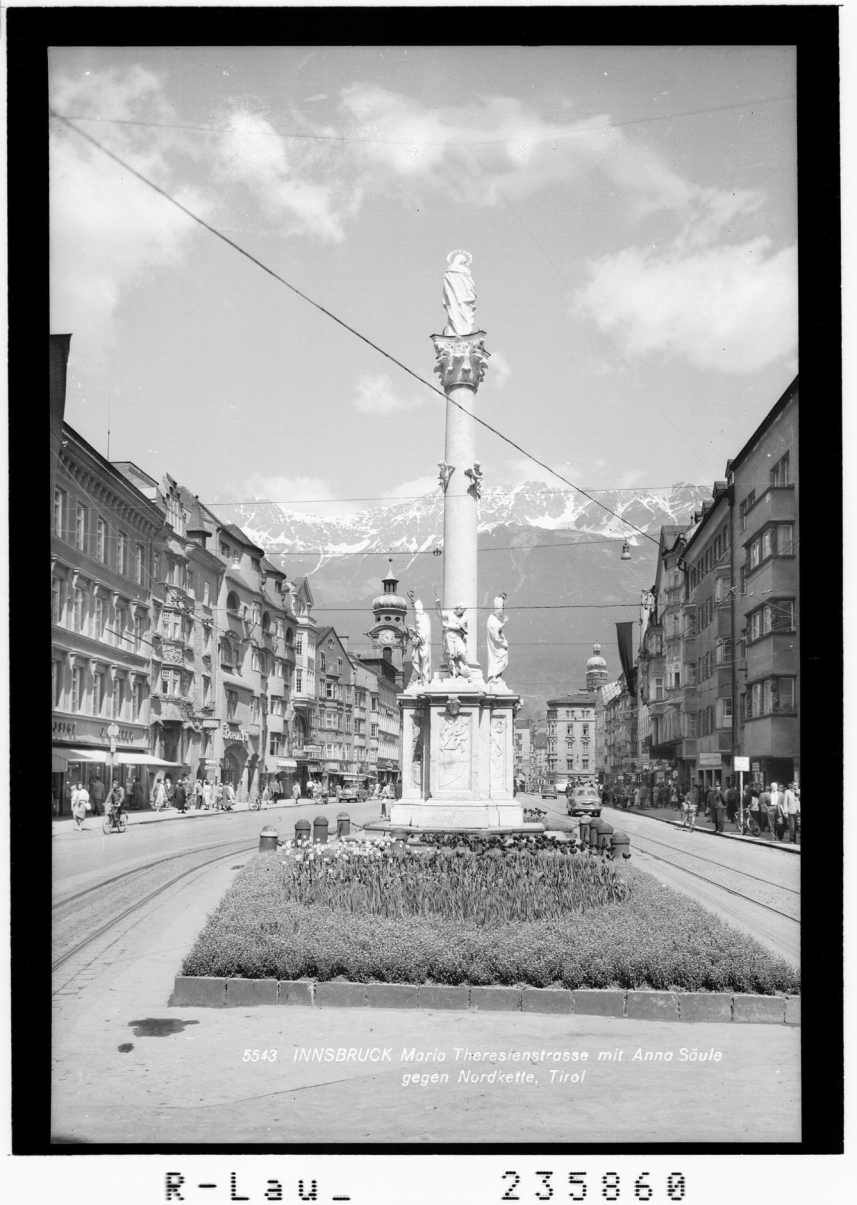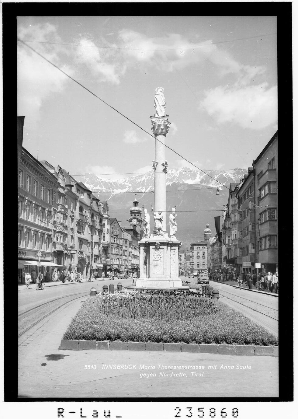 Innsbruck - Maria Theresienstrasse mit Annasäule gegen Nordkette / Tirol