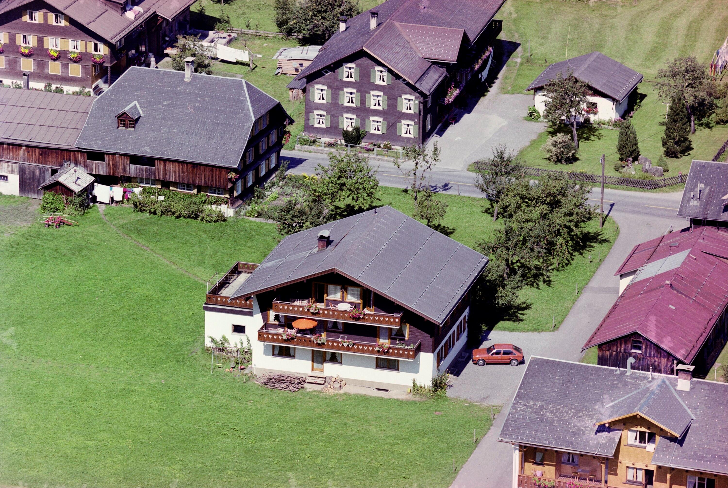 Schrägluftaufnahmen von Gebäuden der Gemeinde Schoppernau