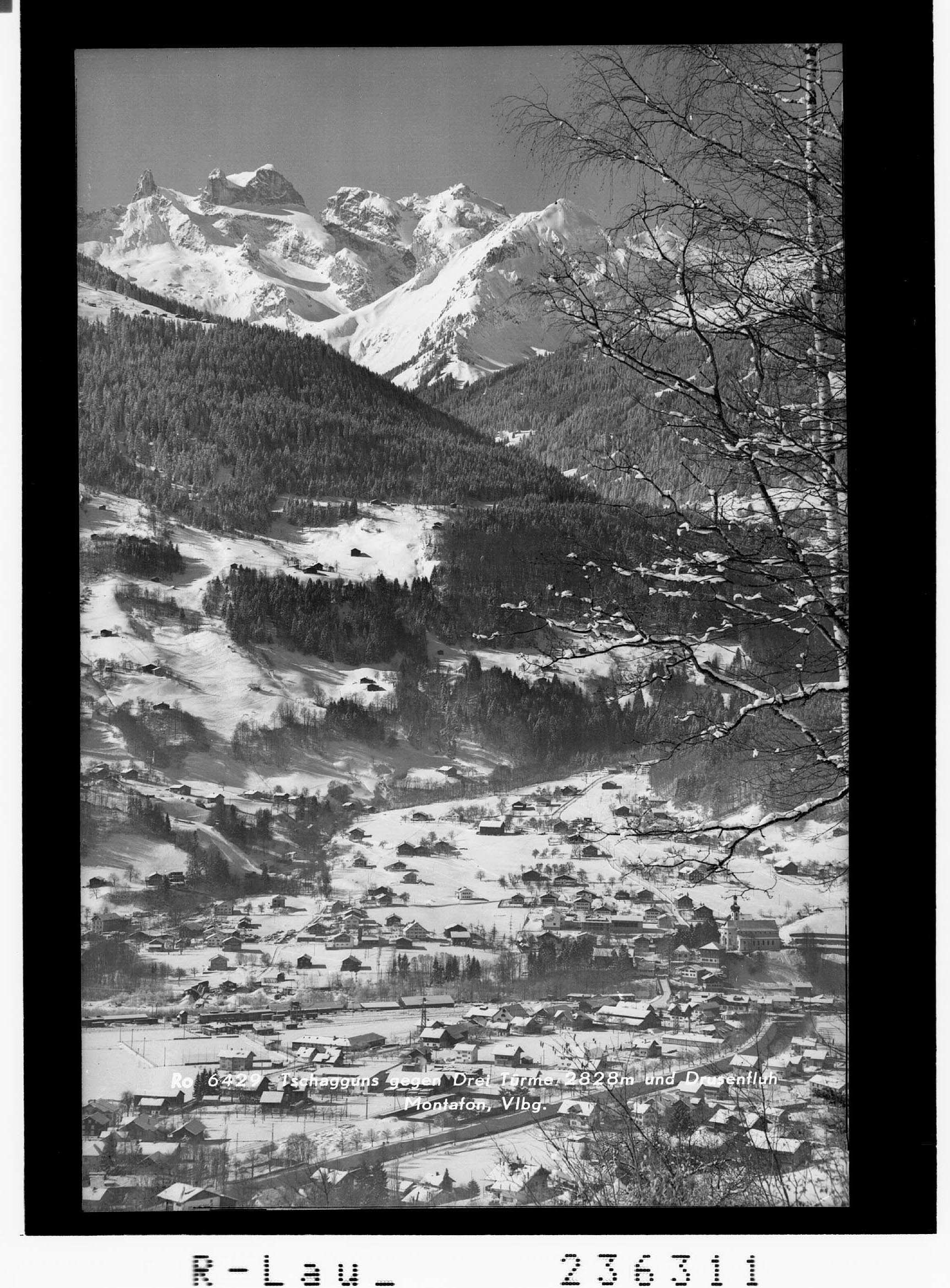 Tschagguns gegen Drei Türme 2828 m und Drusenfluh / Montafon / Vorarlberg