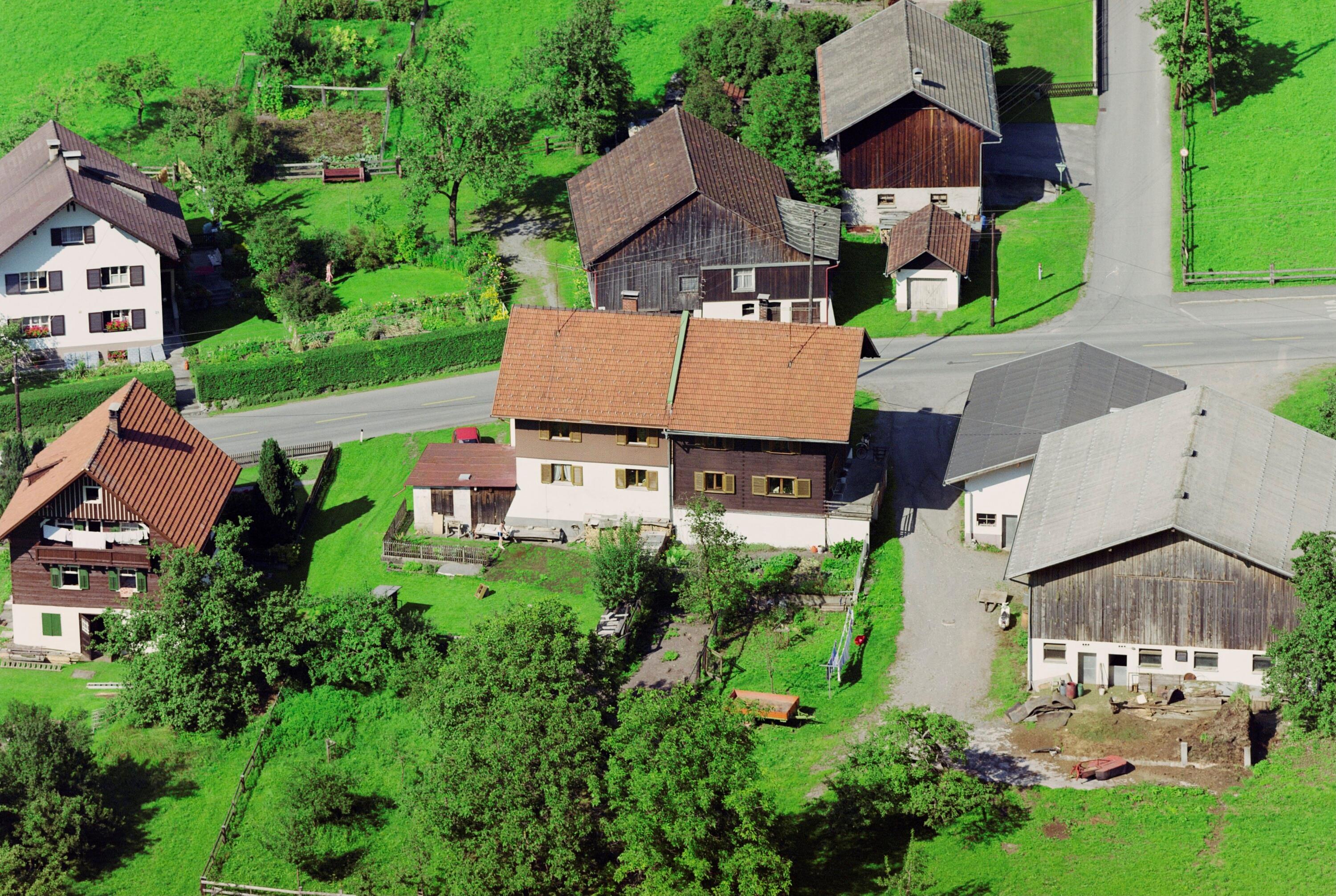 Schrägluftaufnahmen von Gebäuden der Stadt Bludenz, Innerbraz