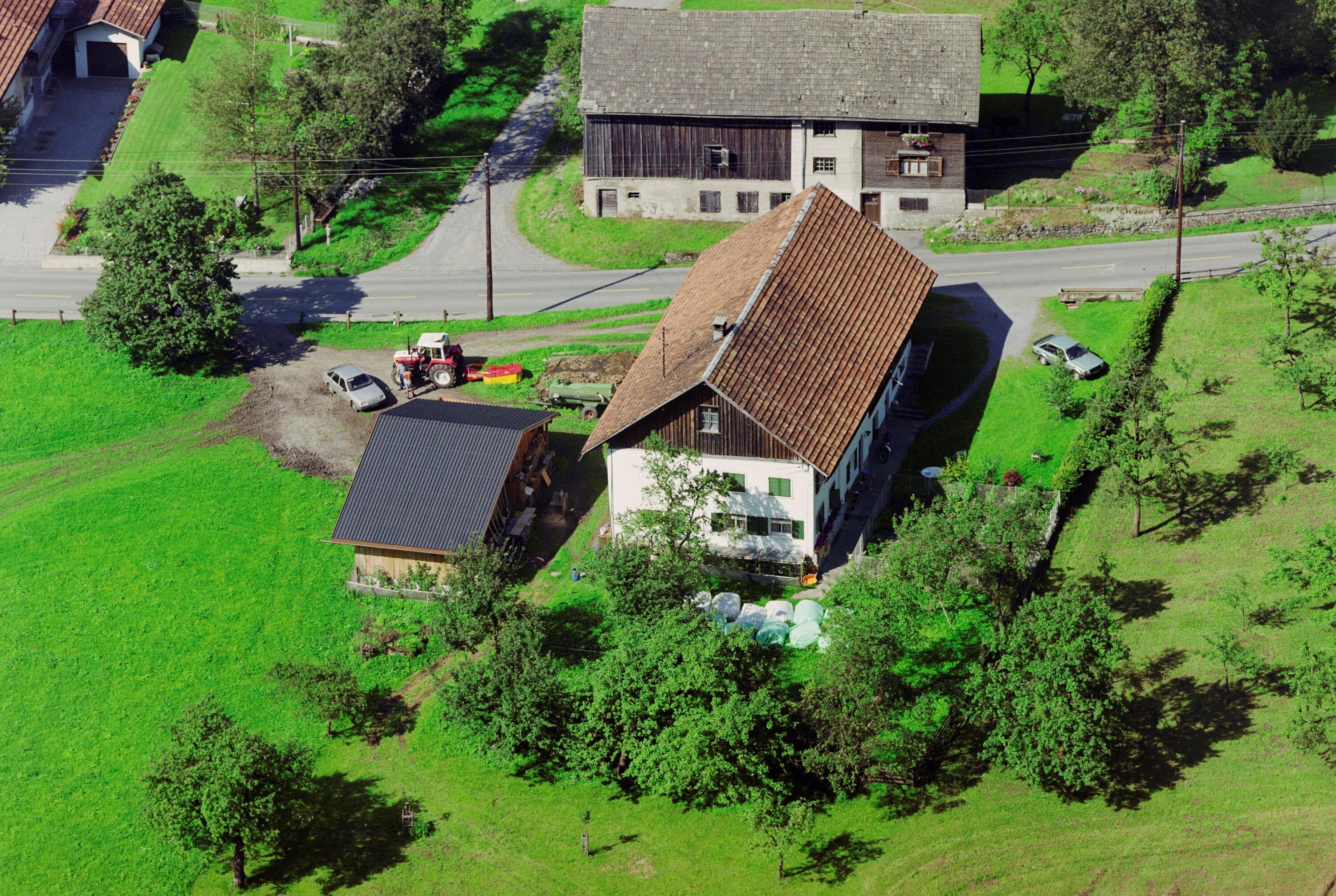 Schrägluftaufnahmen von Gebäuden der Stadt Bludenz, Innerbraz