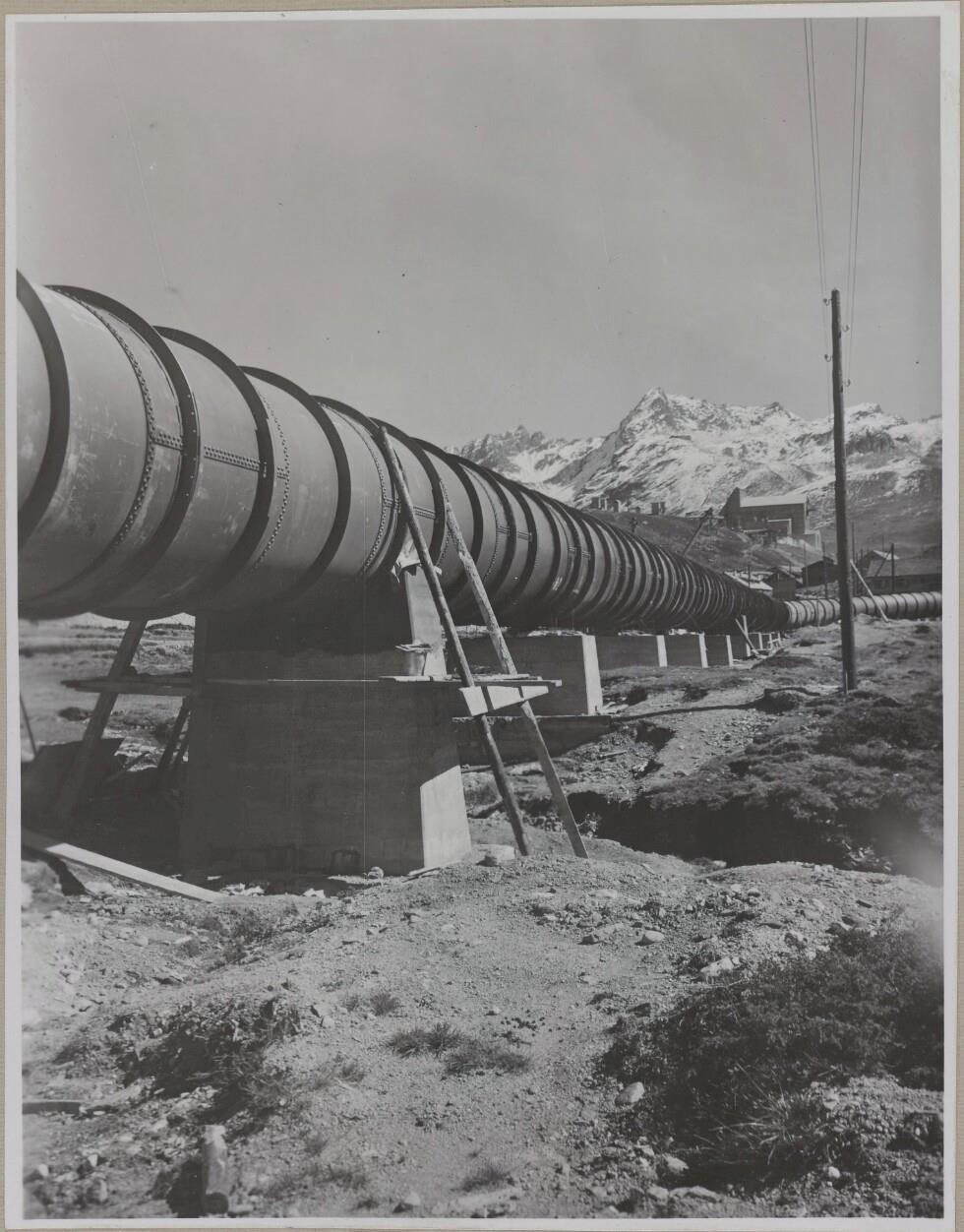 Druckrohrleitung Flachstrecke F.P. 3 und 5, Ansicht v.d. Doppelstopfbühne 4. 5 gegen F.P. 4