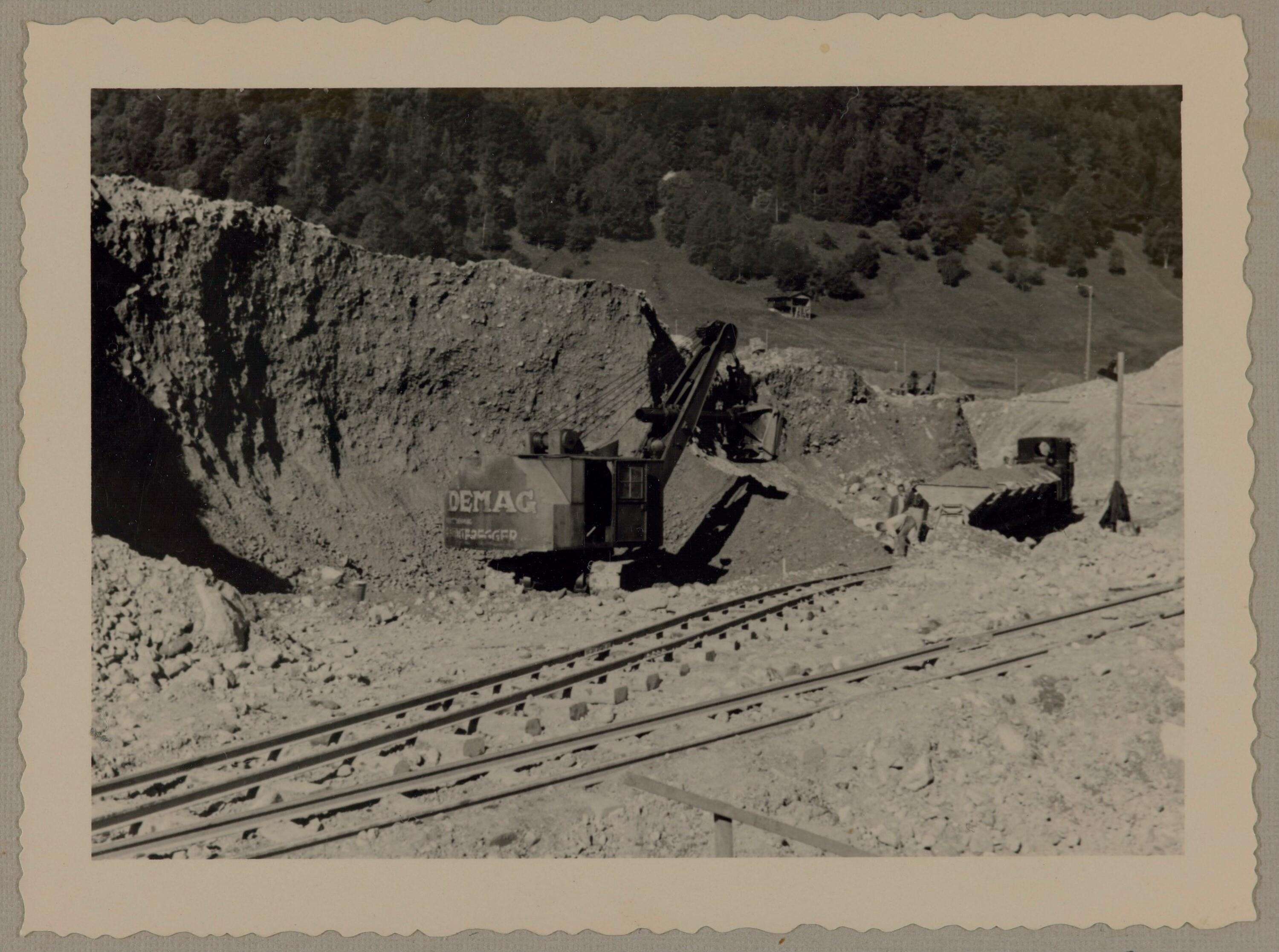 • Hohllöffel aus Sohle 974,00 m Material sehr gut, wird auf Sulzfluhdamm aufgetragen, Arbeiter