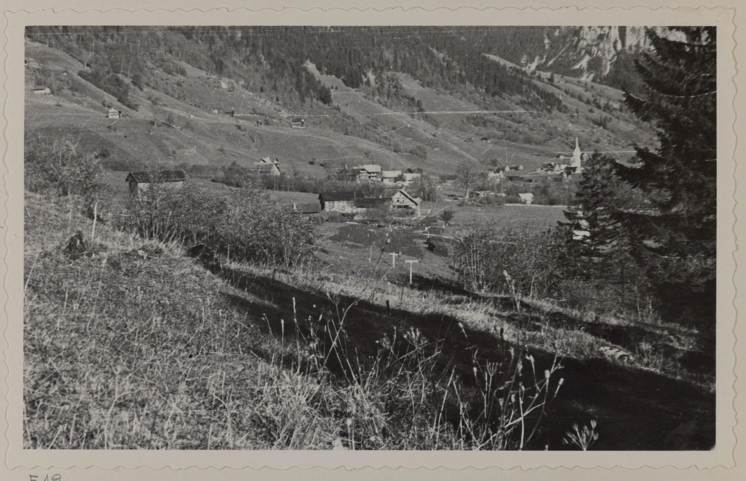 [Brand] : [Brand (1087 m) gegen Schesaplana (2965 m) Zirmenkopf (2906 m) und Seekopf (2698 m), Vorarlberg ...]