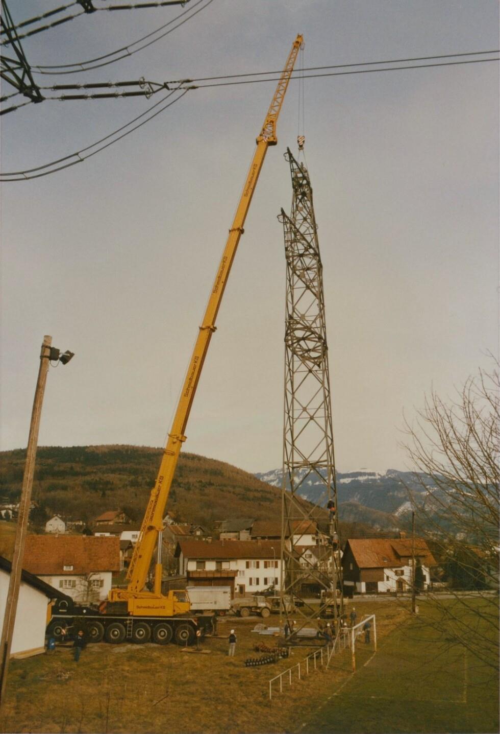 Hochziehen des Mast Nr.120, bei Gaschurn