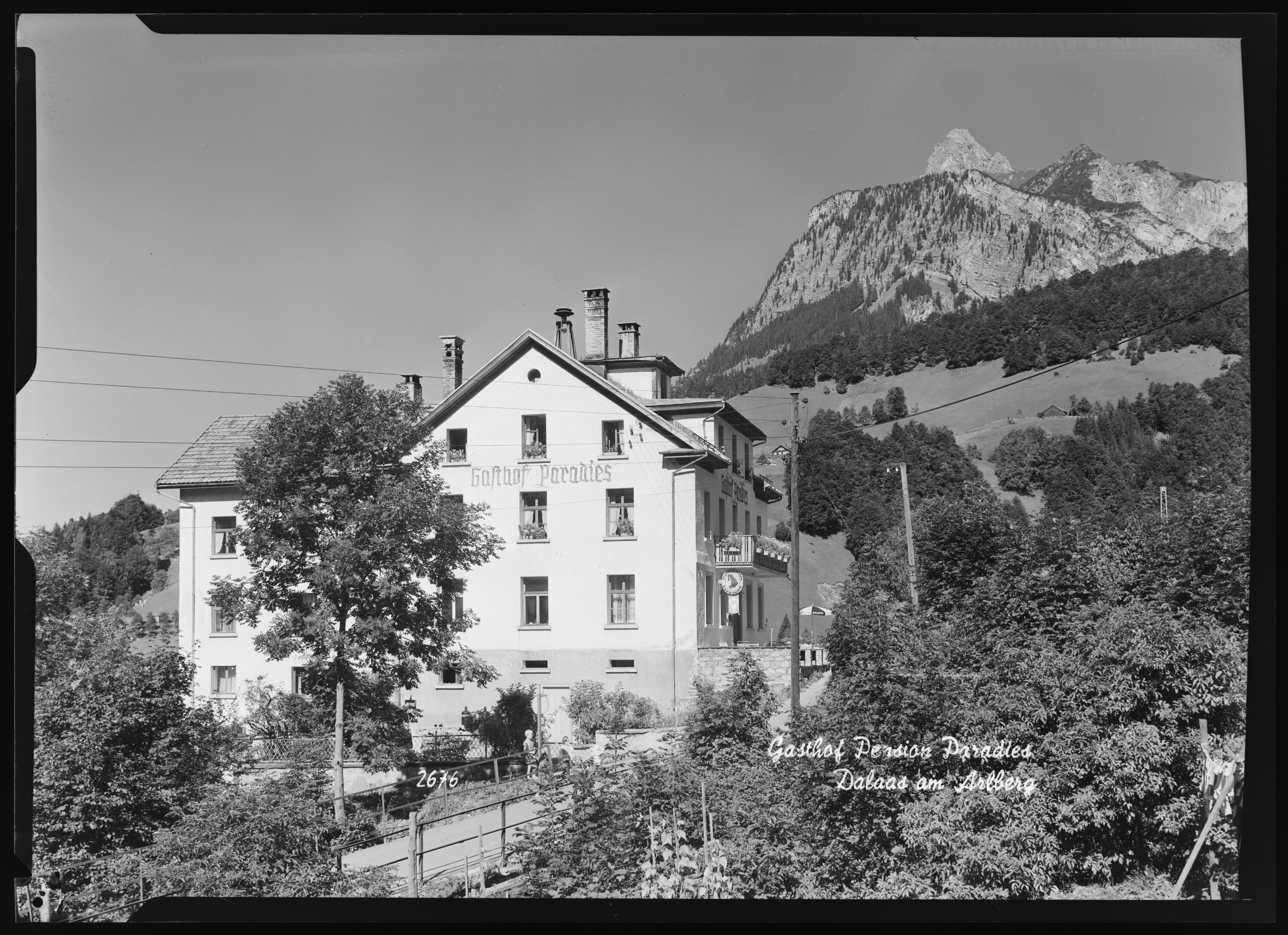 Dalaas am Arlberg, Vorarlberg : [Gasthof-Pension Paradies E. Mayer's Witwe Schöne Fremdenzimmer, beste Verpflegung, billige Preise, Eigene Metzgerei, Bad im Hause ...]
