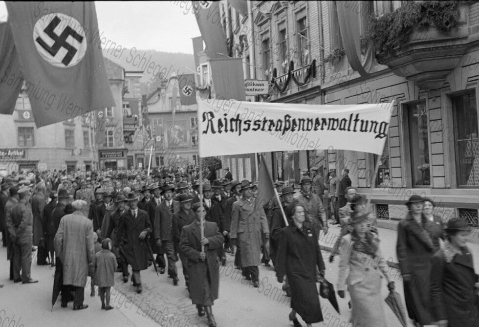 Diese Aufnahmen stammen vom Fotografen Werner Schlegel (1908-1945), der in den Jahren 1938 bis 1940 zahlreiche politische und gesellschaftliche Ereignisse in Vorarlberg fotografisch dokumentiert hat. Aufgrund des sensiblen Inhalts weisen wir ausdrücklich auf unsere Nutzungsbedingungen sowie die Sammlungsbeschreibung hin. Jeglicher Missbrauch der Bilder, insbesondere die Verwendung der Bilder zur Verbreitung nationalsozialistischen Gedankenguts, wird straf- und zivilrechtlich verfolgt.
