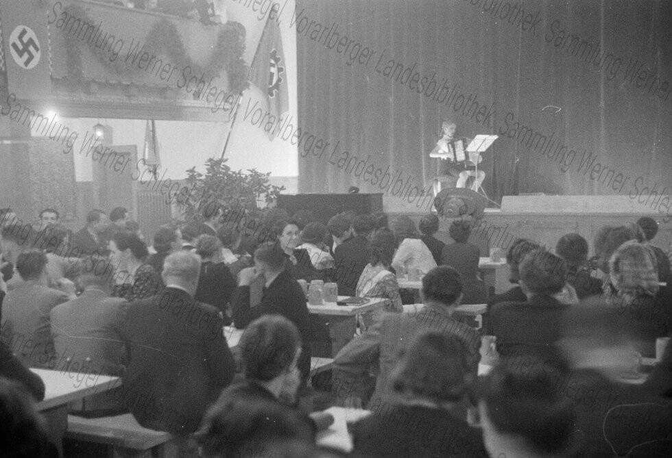 Diese Aufnahmen stammen vom Fotografen Werner Schlegel (1908-1945), der in den Jahren 1938 bis 1940 zahlreiche politische und gesellschaftliche Ereignisse in Vorarlberg fotografisch dokumentiert hat. Aufgrund des sensiblen Inhalts weisen wir ausdrücklich auf unsere Nutzungsbedingungen sowie die Sammlungsbeschreibung hin. Jeglicher Missbrauch der Bilder, insbesondere die Verwendung der Bilder zur Verbreitung nationalsozialistischen Gedankenguts, wird straf- und zivilrechtlich verfolgt.