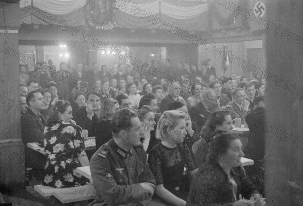 Diese Aufnahmen stammen vom Fotografen Werner Schlegel (1908-1945), der in den Jahren 1938 bis 1940 zahlreiche politische und gesellschaftliche Ereignisse in Vorarlberg fotografisch dokumentiert hat. Aufgrund des sensiblen Inhalts weisen wir ausdrücklich auf unsere Nutzungsbedingungen sowie die Sammlungsbeschreibung hin. Jeglicher Missbrauch der Bilder, insbesondere die Verwendung der Bilder zur Verbreitung nationalsozialistischen Gedankenguts, wird straf- und zivilrechtlich verfolgt.