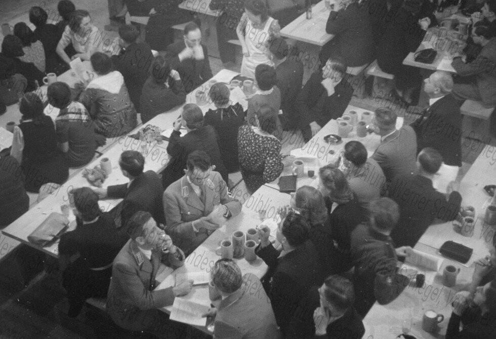 Kern des nationalsozialistischen Ideals der "Betriebsgemeinschaft" war die Inszenierung eines Unternehmens als Familie, die gemeinsam für das Wohl der Firma, des Volkes und des Vaterlands arbeitet. Der Unternehmer in der Rolle als wohlwollender Patriarch, die Belegschaft als loyales Subjekt. In der Realität verschlechterten sich die Arbeitsbedingungen für Angestellte und Arbeiter jedoch vor allem nach Kriegsbeginn zusehends, weshalb die Unzufriedenheit stetig zunahm. Dem versuchten die Unternehmen und die Deutsche Arbeitsfront (kurz DAF) mit verschiedenen Belustigungen entgegen zu wirken; etwa betriebsinternen Theater- und Liederabenden. Die Serie zeigt einen solchen Abend bei der Kennelbacher Firma Schindler im Dezember 1940.