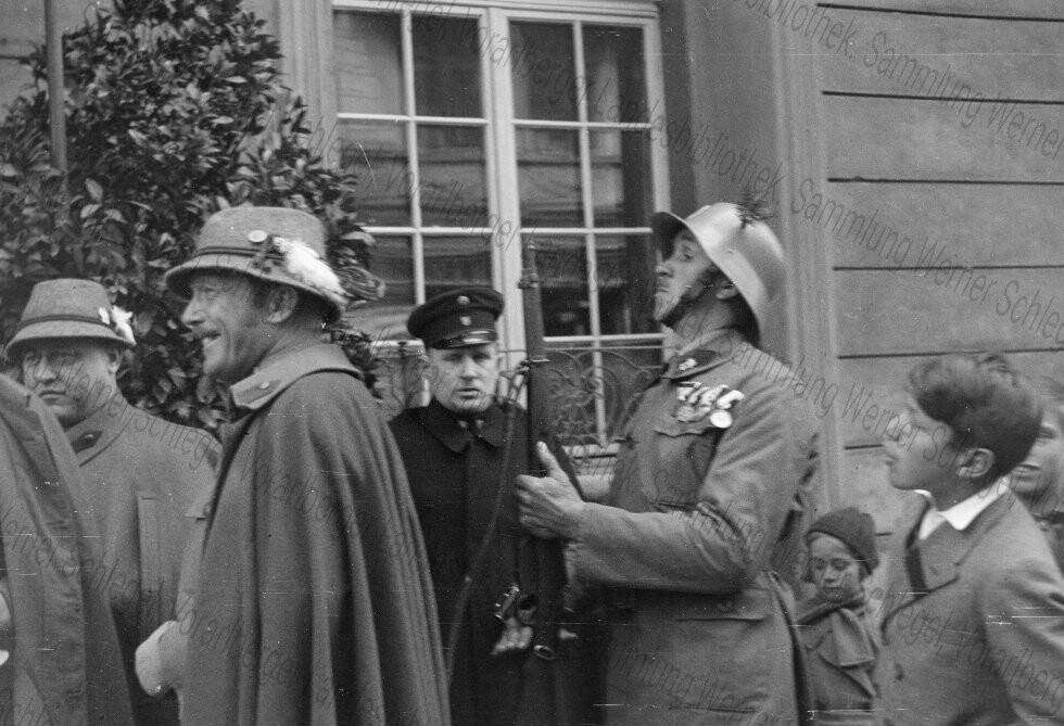 Diese Aufnahmen stammen vom Fotografen Werner Schlegel (1908-1945), der in den Jahren 1938 bis 1940 zahlreiche politische und gesellschaftliche Ereignisse in Vorarlberg fotografisch dokumentiert hat. Aufgrund des sensiblen Inhalts weisen wir ausdrücklich auf unsere Nutzungsbedingungen sowie die Sammlungsbeschreibung hin. Jeglicher Missbrauch der Bilder, insbesondere die Verwendung der Bilder zur Verbreitung nationalsozialistischen Gedankenguts, wird straf- und zivilrechtlich verfolgt.