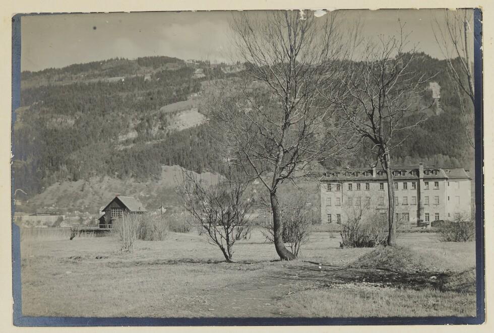 • 1880er Jahren von Johann Georg Salzmann aus Dornbirn direkt am Bodenseeufer erbaute Dampfsäge. Hier wurde betriftetes Blockholz aus dem Bregenzerwald verarbeitet. 1893 ging die Säge an Cornelius Rhomberg, der ein großes Baugeschäft in Bregenz führte. Nach dessen Tod 1912 stellte die Witwe den Sägebetrieb ein. Westansicht der bereits inaktiven Rhomberg'schen Dampfsäge auf dem städtischen Ried. Im ehemaligen Trifthäuschen (links) war zur Zeit der Aufnahme provisorisch das Bregenzer Frauenbad untergebracht.