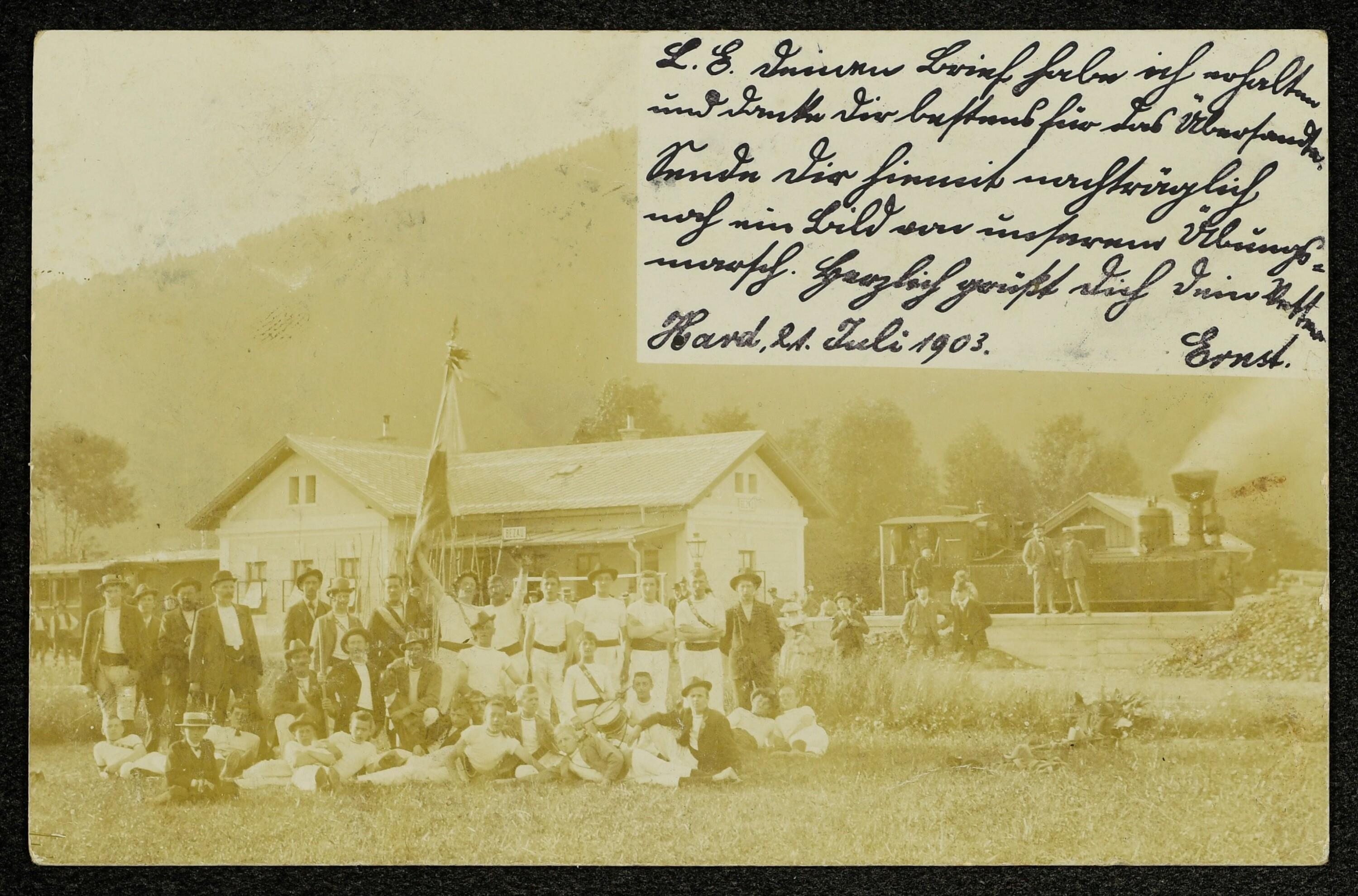 Verein in Bezau Bahnhof : [Correspondenz-Karte]
