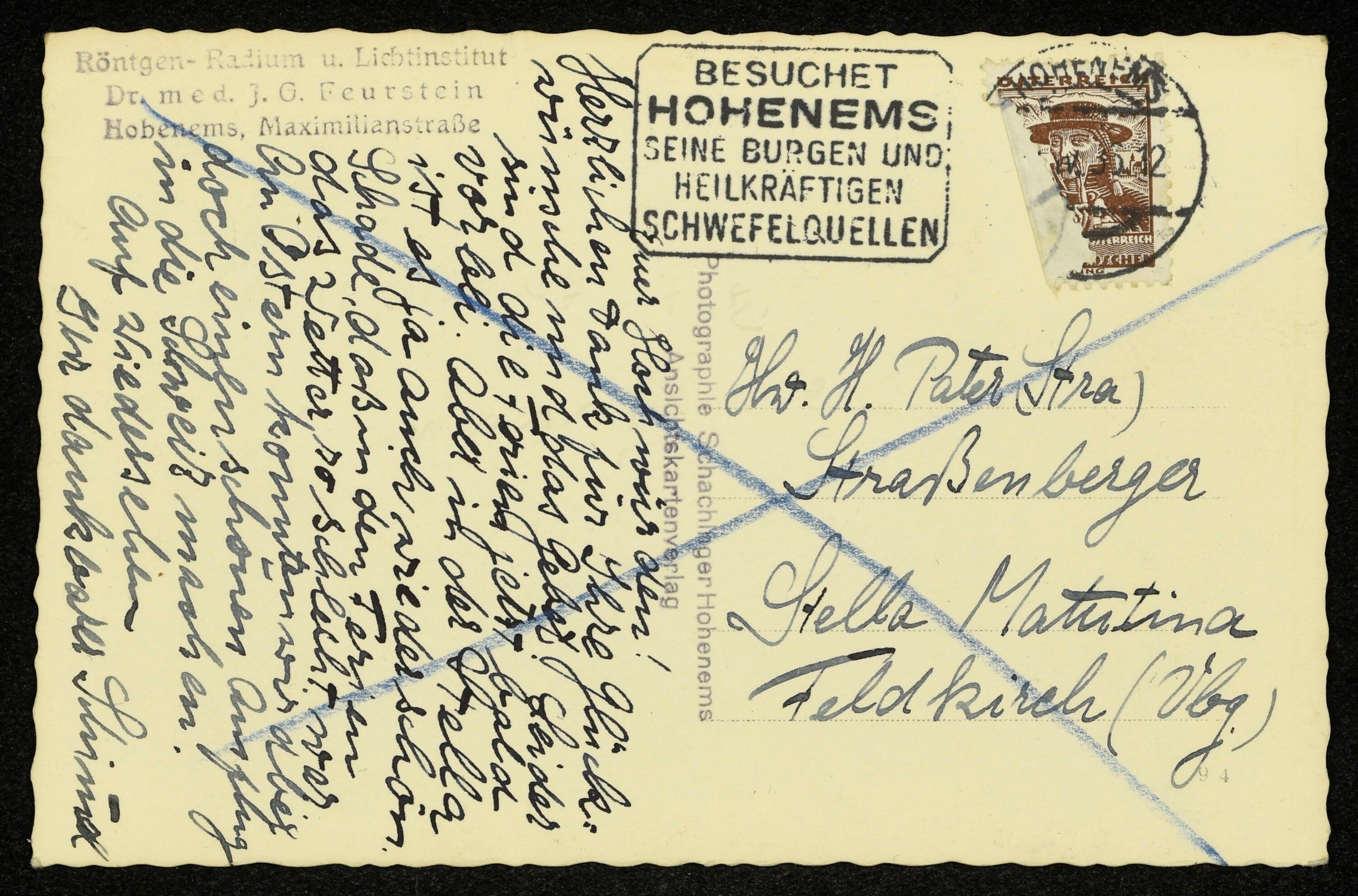 Röntgen-Radium u. Lichtinstitut Dr. med. J. G. Feurstein, Hohenems, Maximilianstraße