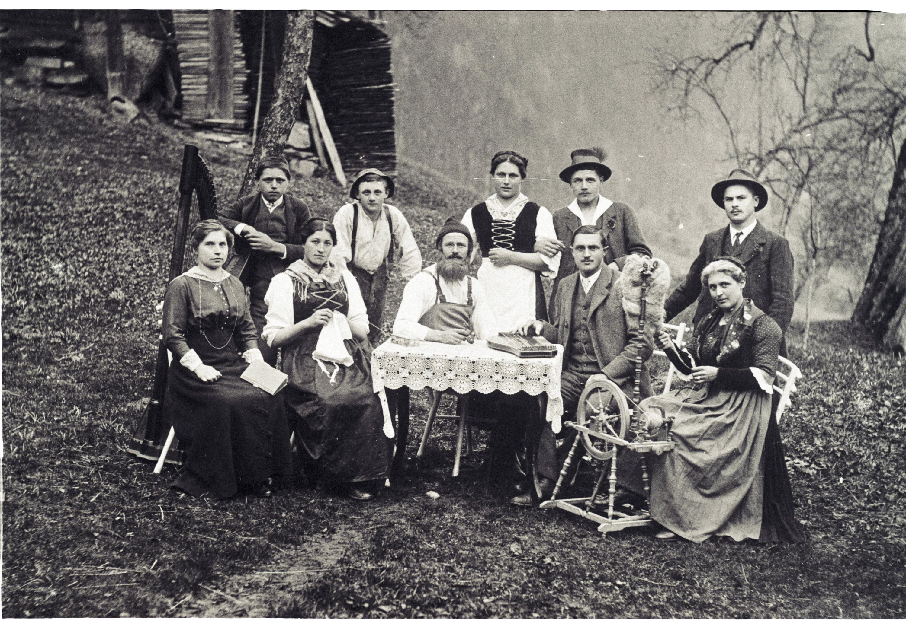 • Das Bild zeigt eine eventuell aus Tirol stammende Laienspielgruppe.