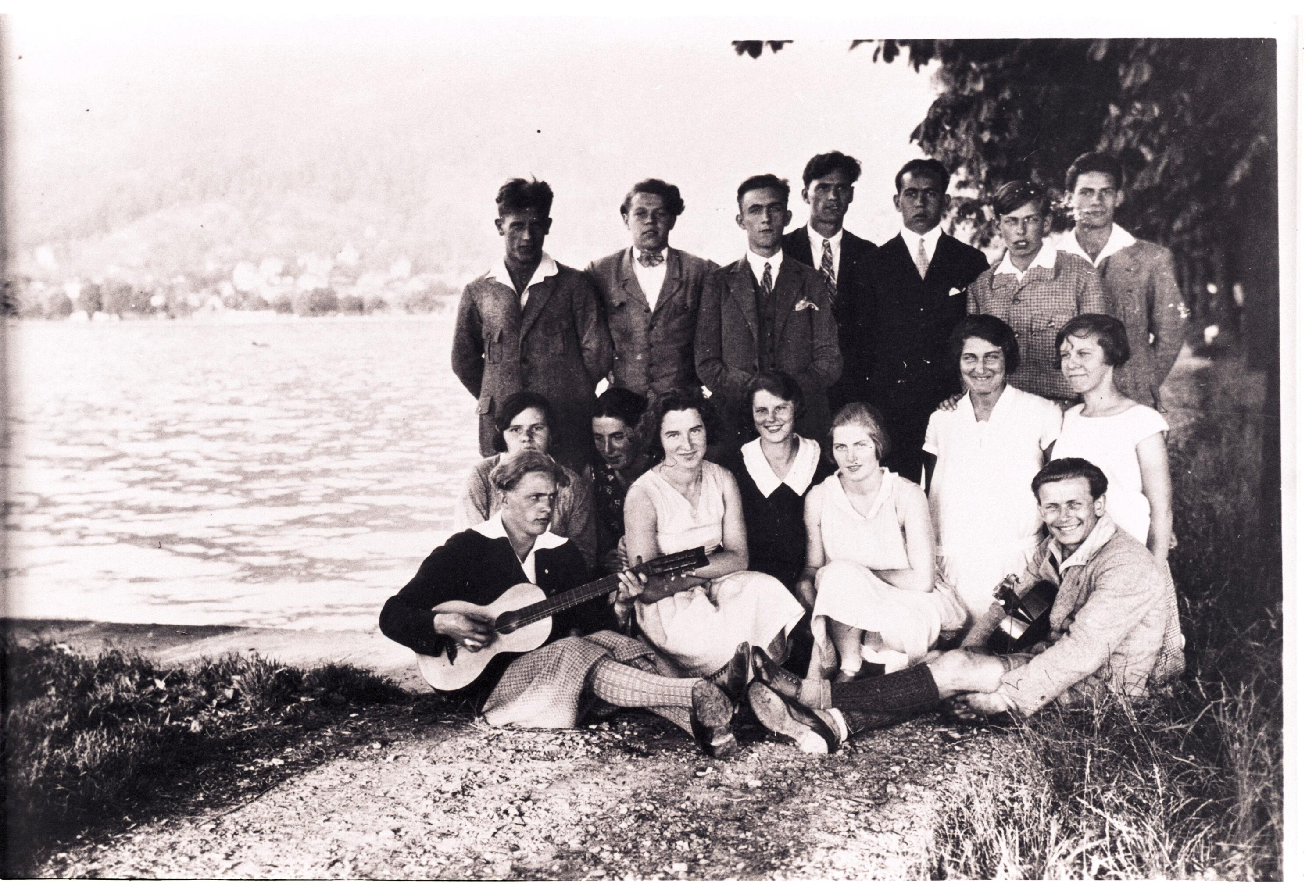 • Das Bild zeigt Mitglieder der Bregenzer Ortsgruppe der Sozialdemokratischen Arbeiterjugend (SAJ) am Bodensee. Sitzend 4.v.l.: Mili Spindler (verehelichte Emilie Pruner); stehend 2.v.l.: der spätere Landtagsabgeordnete Anton Mayrhauser