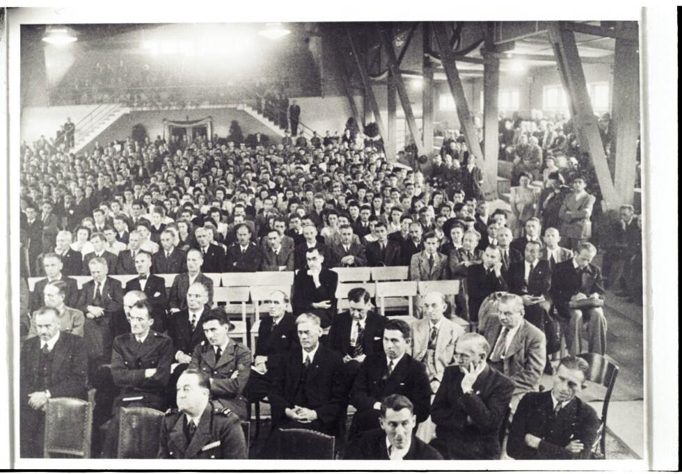 • Das Bild zeigt das Publikum der Jungbürgerfeier der Vorarlberger Arbeiterkammer im September 1947 in der Sporthalle Bregenz.