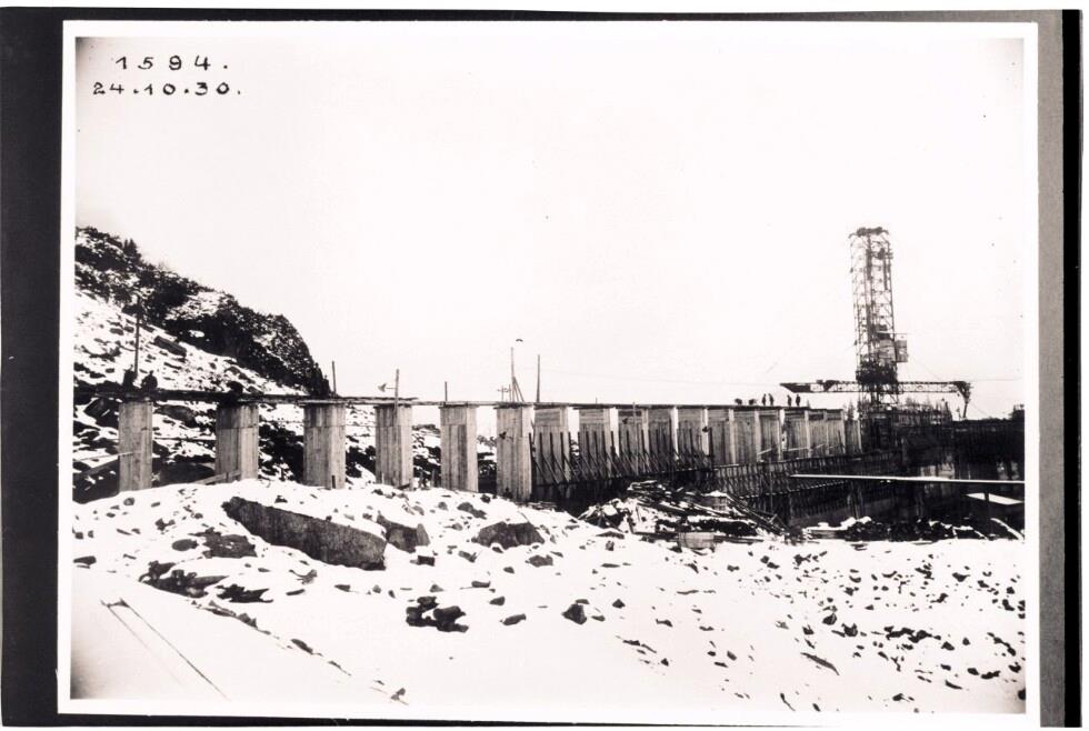 Staumauer Vermunt, Betonierung Bl. 12, letzter direkt vom Turm eingebrachter Beton