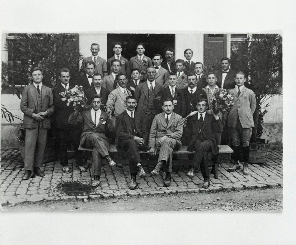 • Das Bild zeigt die Mitglieder des Arbeitergesangsvereins Nibelungenhort aus Hohenems während eines Ausflugs nach Sulz-Röthis im Juli 1924. 1. Reihe v.l.n.r.: Lois Amann, Meinrad Schuler (Obmann), Harry Weil (Chorleiter), Josef Mathis; 2. Reihe v.l.n.r.: Albert Häberlin, Josef Mathis, Johann Georg Märk, Anton Peter, Josef Reis, Ferdi Wehinger, Gebhard Drexel, Robert Vogel, August Häberlin; 3. Reihe v.l.n.r.: Ludwig Vetter, Karl Amann, Johann Schuler, Karl Mathis, Karl Amann, Josef Völke, Wlhelm Waibel; 4. Reihe v.l.n.r.: Josef Eulenhaupt, Jakob Aberer, Gebhard König, Ignaz Mayer und Franz Claser (Glaser?)