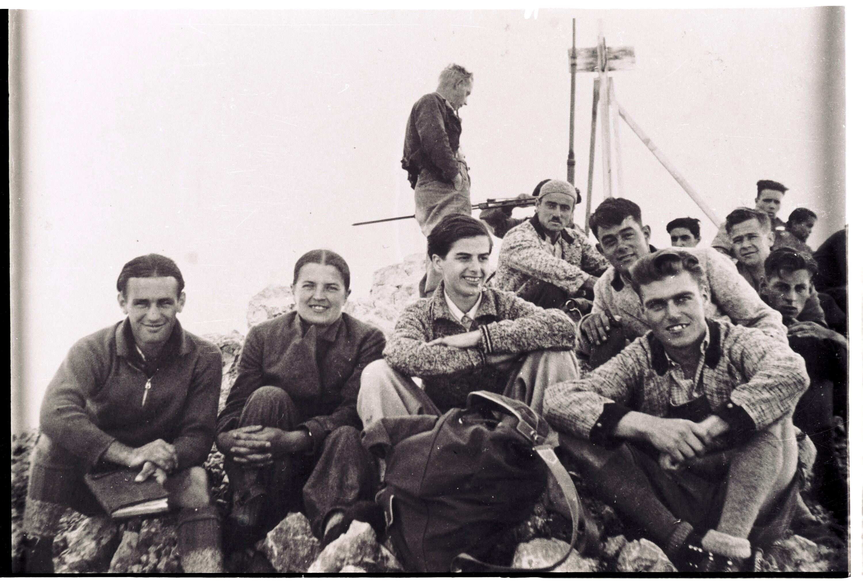 • Das Bild zeigt die Teilnehmer einer Wanderung auf die Zimbaspitze 1936. Es handelt sich dabei um ehemalige Mitglieder des nunmehr verbotenen ATSV Bludenz. Sitzend 5.v.l.: Fritz Pichlkostner, vorne rechts: Franz Zoller