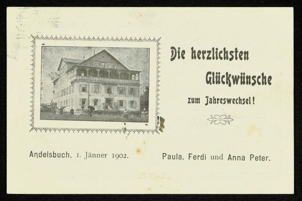 Hôtel u. Pension König (vis-à-vis dem Bahnhof) Andelsbuch : [Correspondenz-Karte ...]