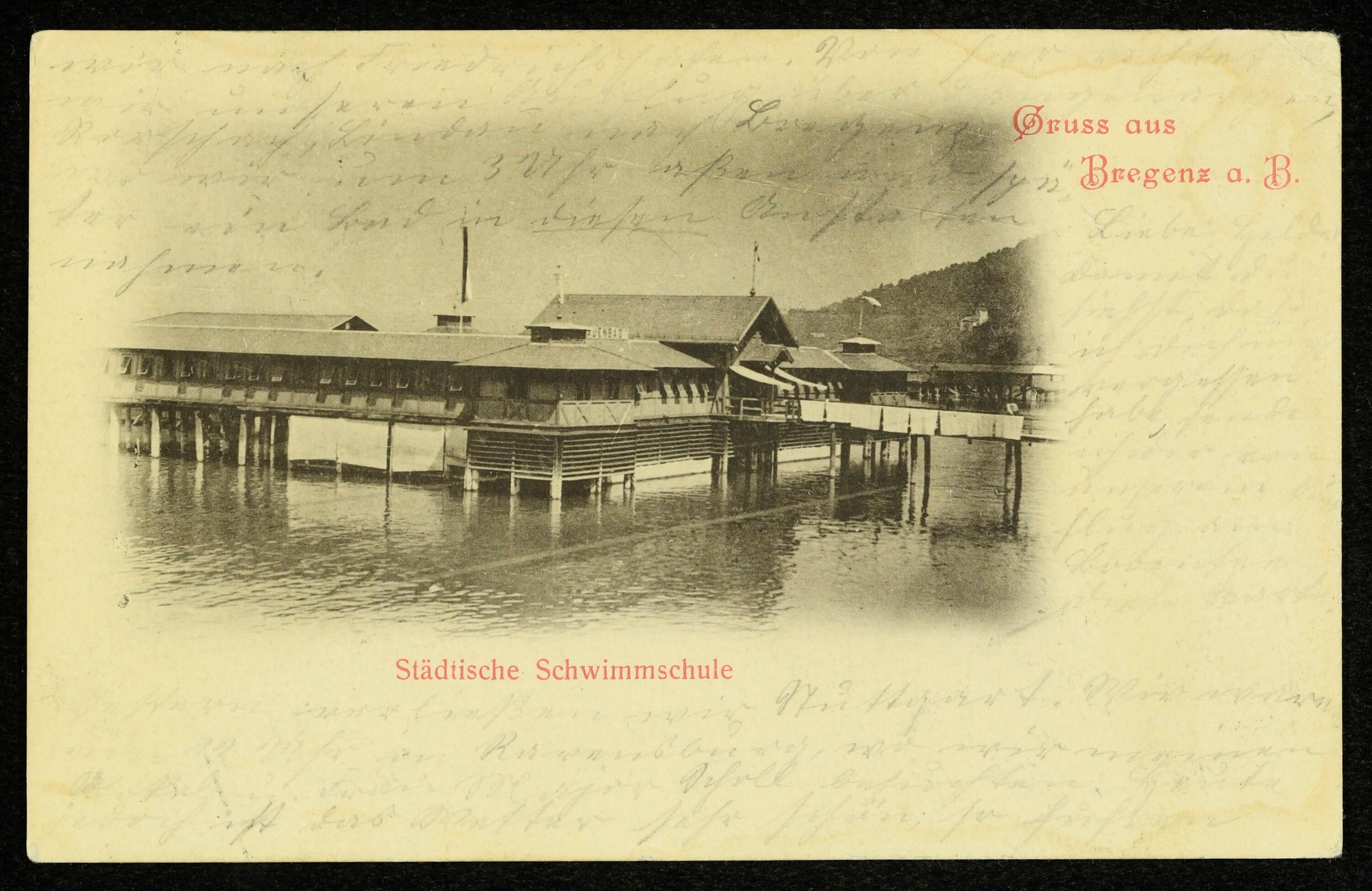 Gruss aus Bregenz a. B. : Städtische Schwimmschule : [Correspondenz-Karte ...]