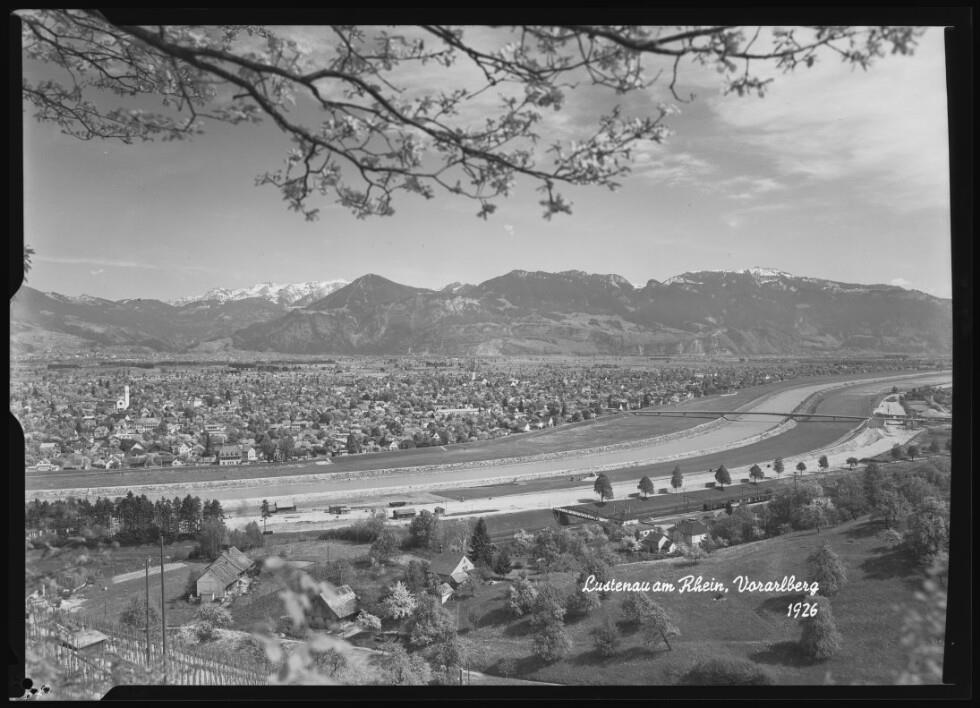 [Lustenau] : [Blick vom Schweizer Berg auf Lustenau am Rhein Hauptort der Vorarlberger Stickereiindustrie ...]