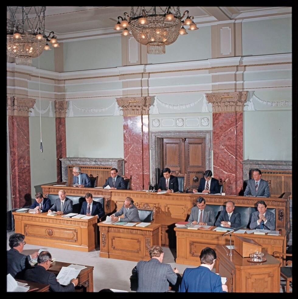 Regierungsbank im Landtagssaal