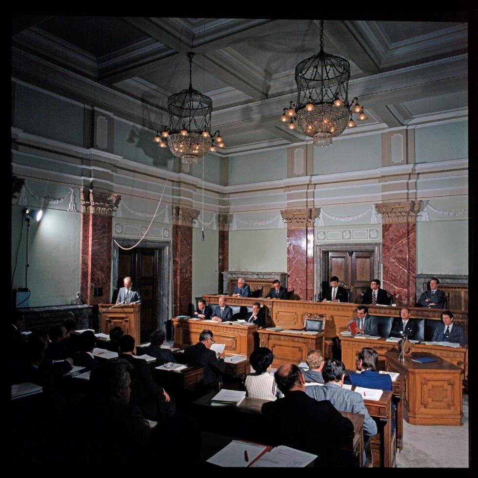Regierungsbank im Landtagssaal