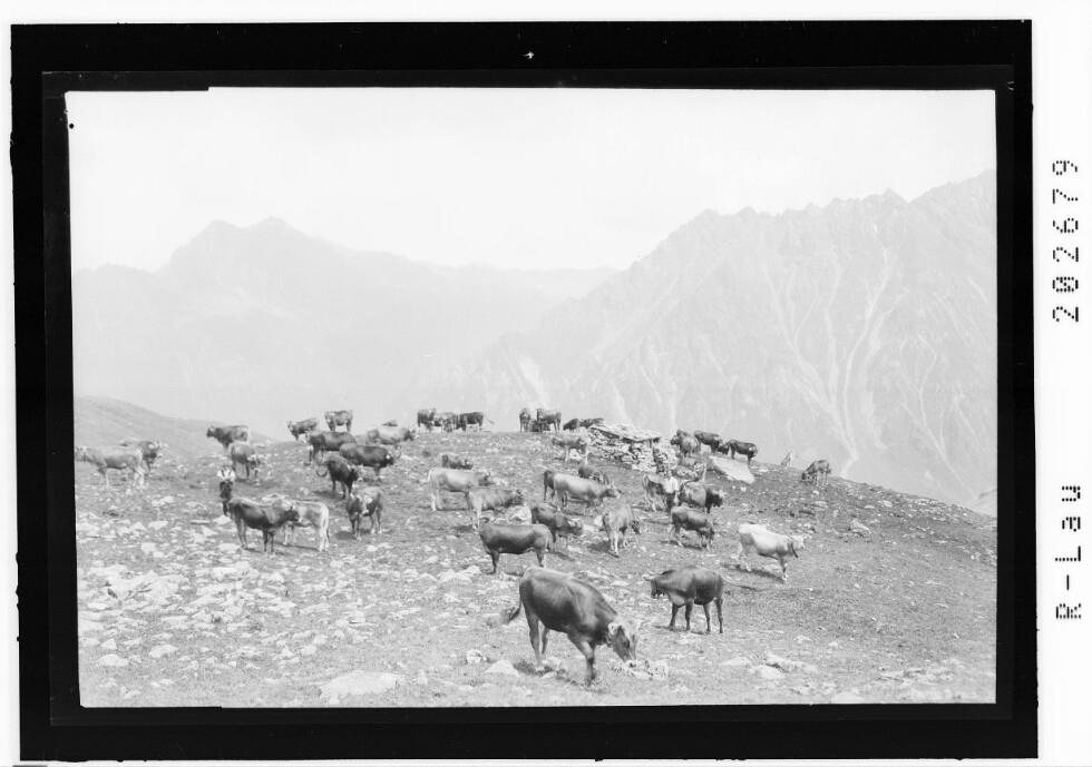 [Weidende Viehherde auf dem Schafberg ob Gargellen / Montafon]