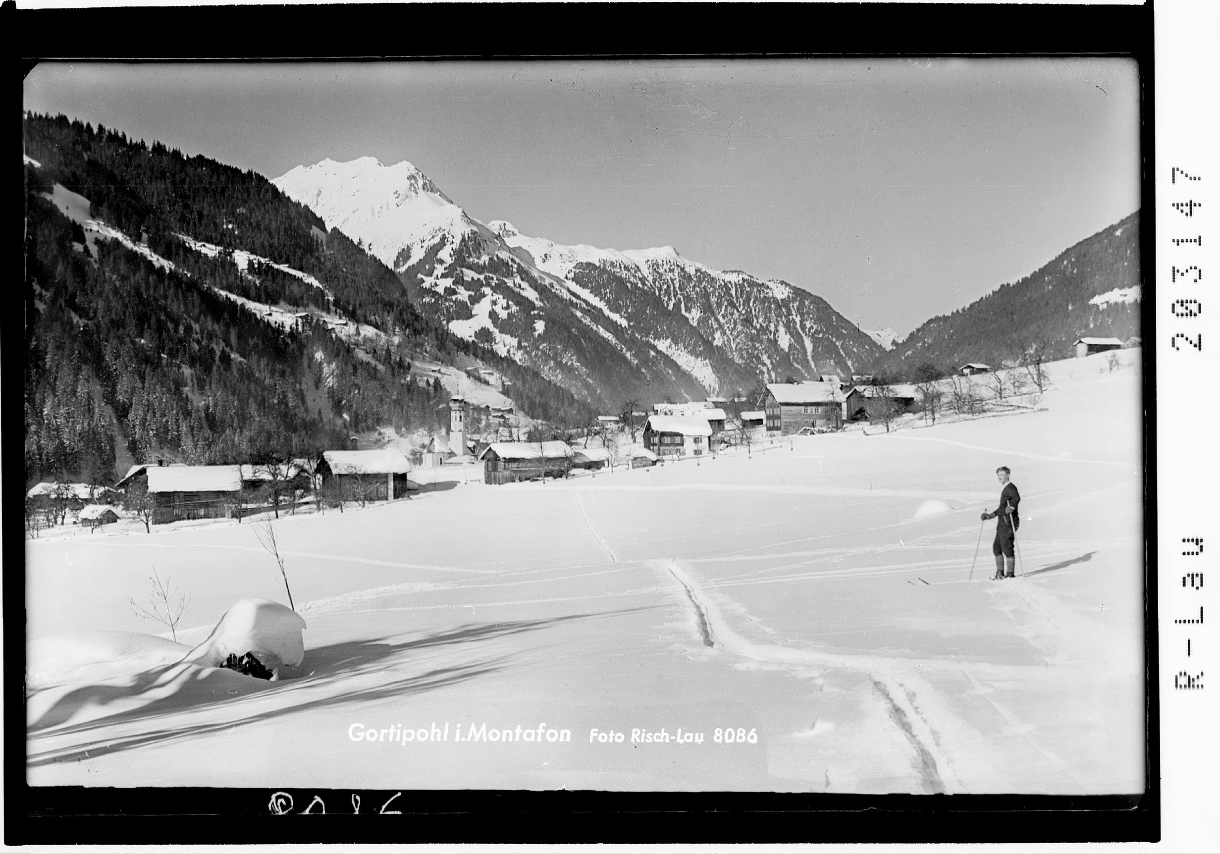 1 Glasplatte (Negativ), schwarz-weiß, quer, 9 x 14 cm