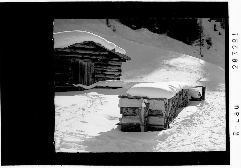 [Heustadel und Holzstoss]