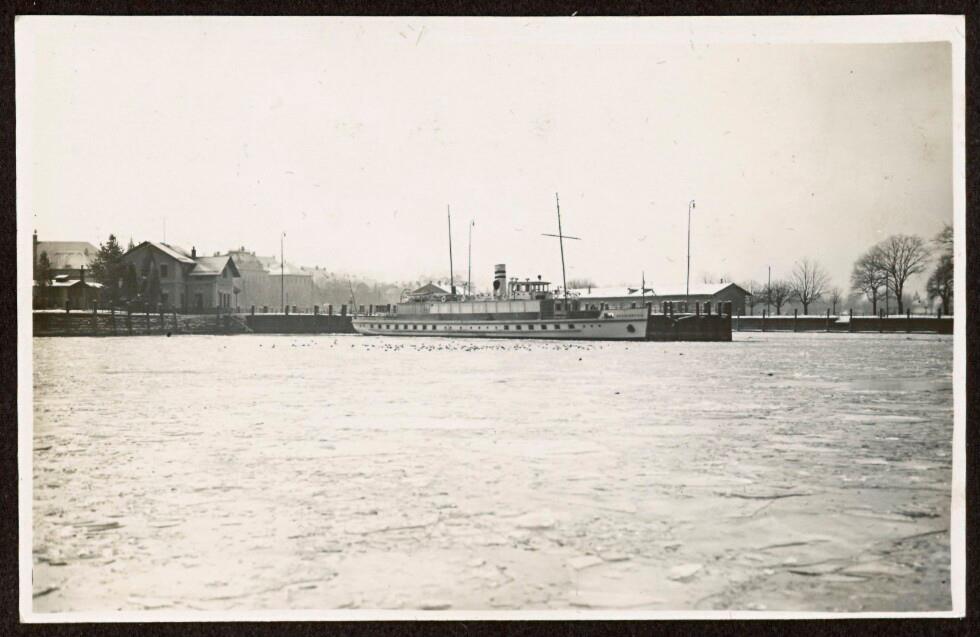 [Die MS Österreich durchbricht das Eis im See]