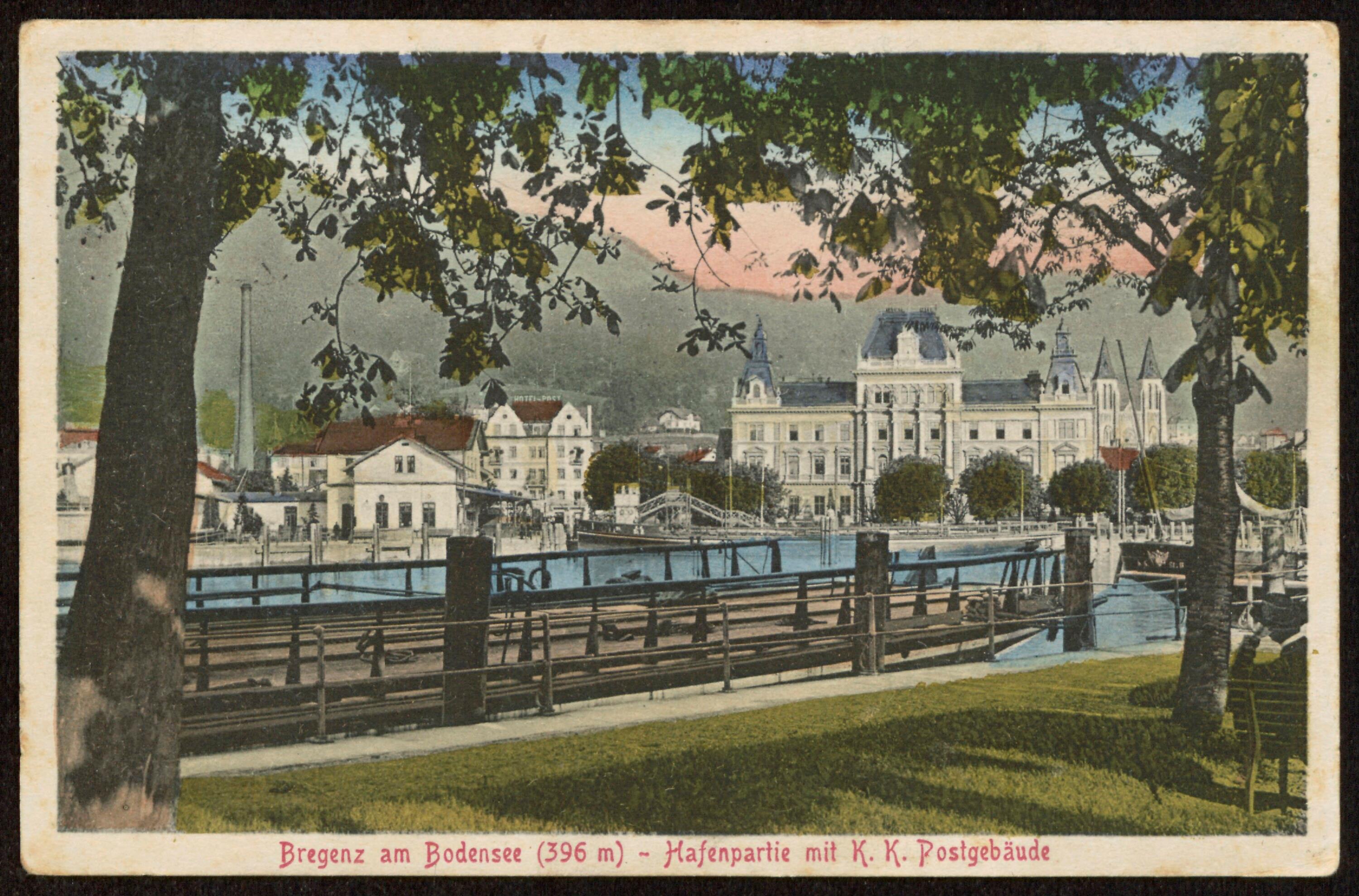 Bregenz am Bodensee (396 m) - Hafenpartie mit K. K. Postgebäude