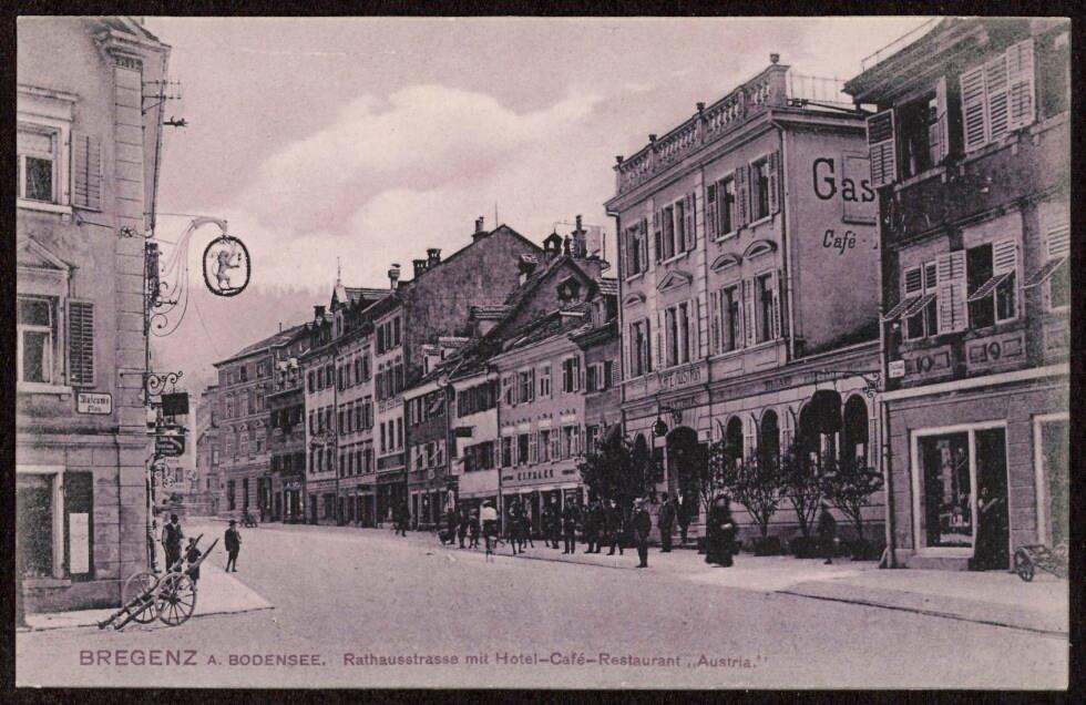 Bregenz a. Bodensee Rathausstrasse mit Hotel-Café-Restaurant "Austria"