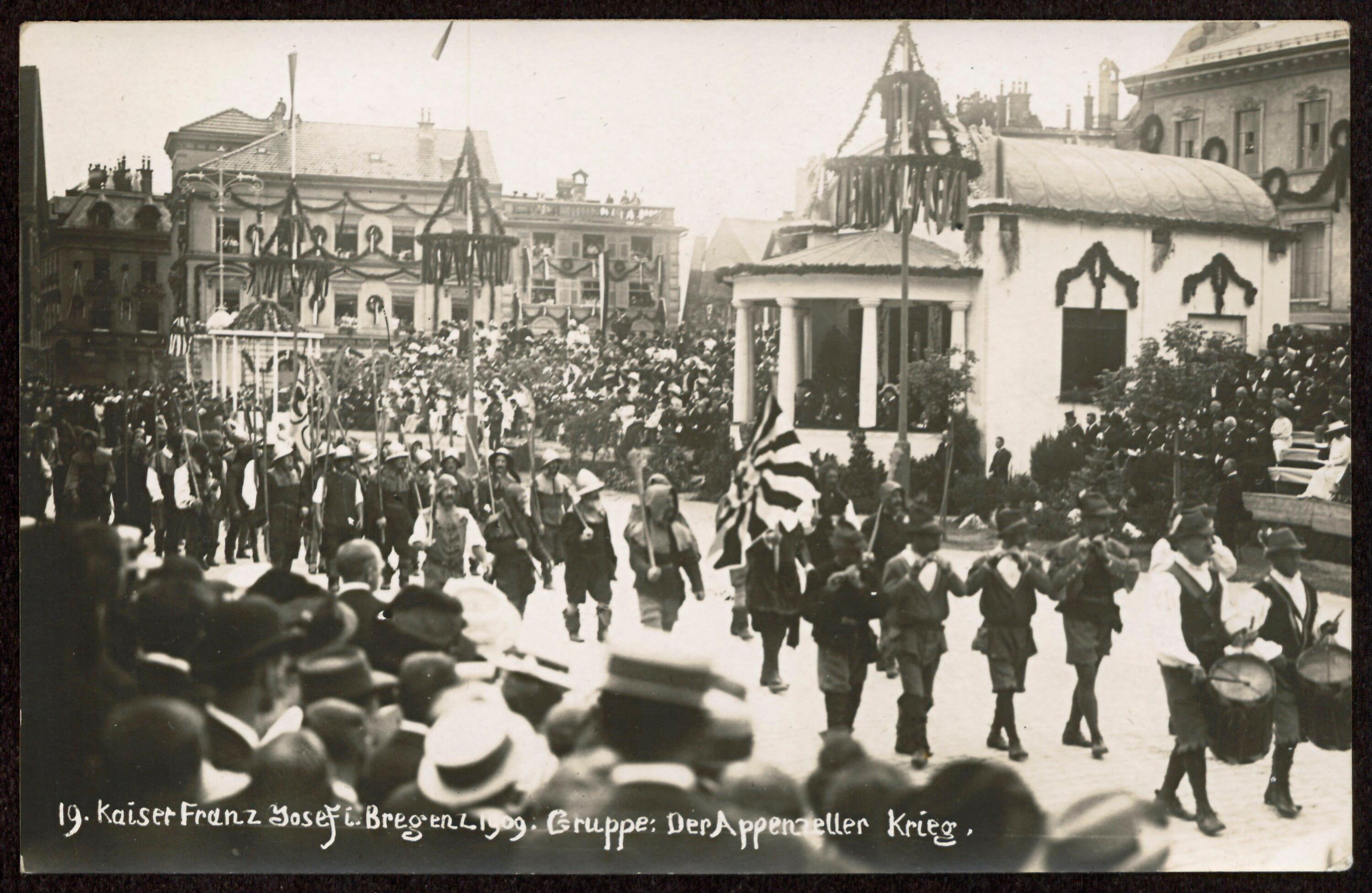 Kaiser Franz Josef I. i. Bregenz 1909. Gruppe: Der Appenzeller Krieg